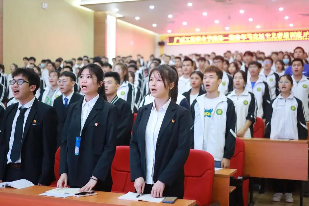 學(xué)校校長(zhǎng)助理黃秋霞、黨委辦副主任黃香琴、校團(tuán)委負(fù)責(zé)人梁鳳琴及各分團(tuán)委書(shū)記出席開(kāi)班儀式。儀式由黃詩(shī)晴老師主持。