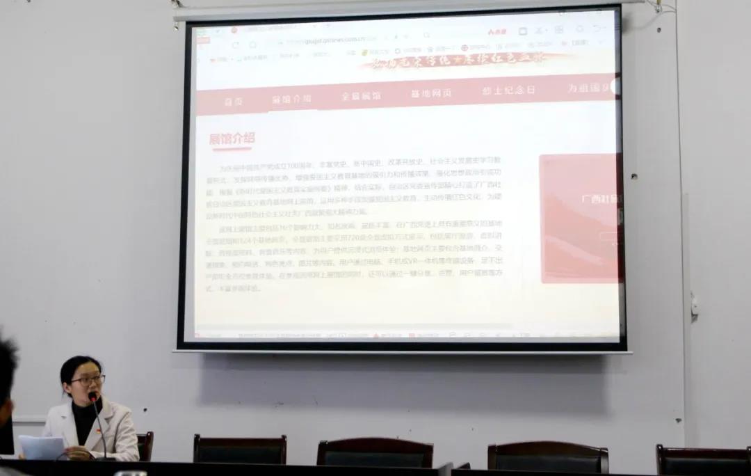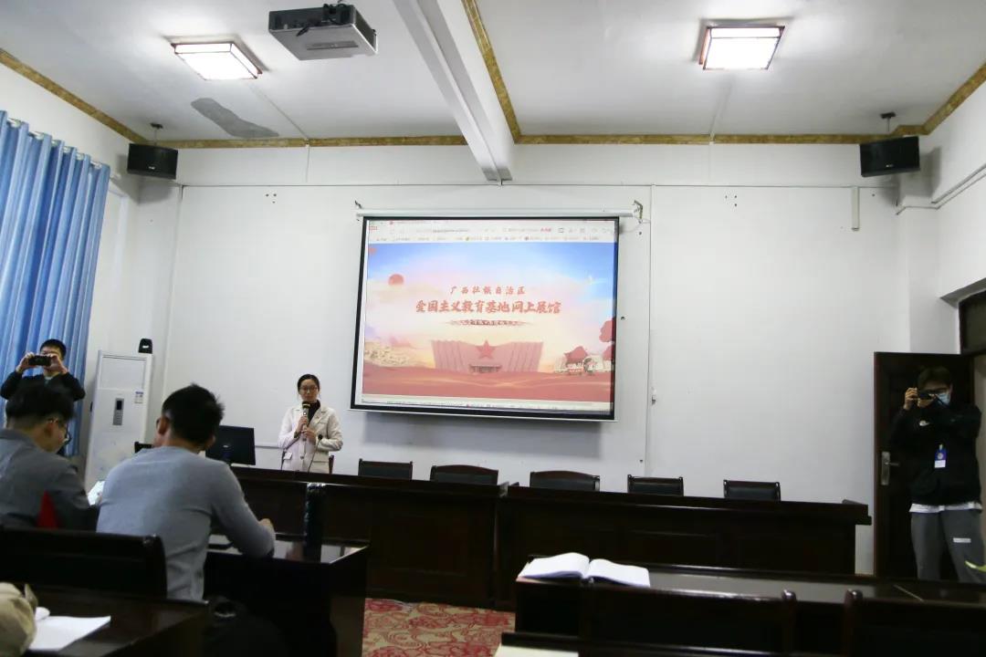 學習會上,覃鳳姣書記帶領老師和同學們參觀了4個影響力大、知名度高、展陳豐富、在廣西黨史上具有重要意義的基地全景展館,介紹了其他基地網(wǎng)頁的使用方法。通過參觀愛國主義教育基地網(wǎng)上展館,傾聽紅色故事,傳承紅色基因,賡續(xù)精神血脈,為建設新時代中國特色社會主義壯美廣西凝聚起強大精神力量。