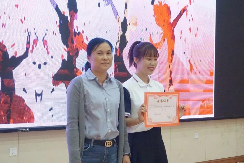 教育學院黨支部書記盧燕梅為榮獲二等獎的隊伍頒獎