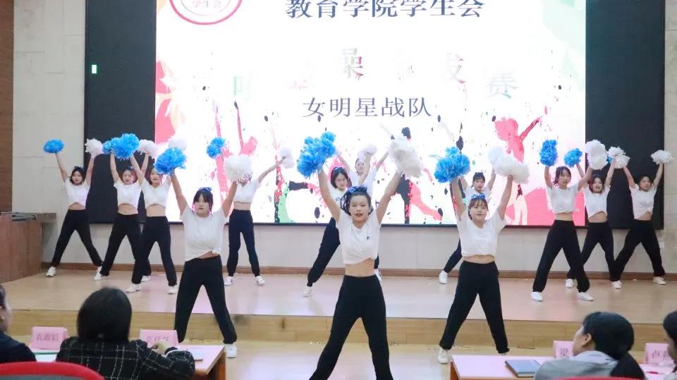 教育學院黨支部書記盧燕梅、副院長梁善雅,學院20級、21級輔導員及教師代表出席比賽現(xiàn)場,學校各個社團代表及教育學院學生代表觀看比賽。