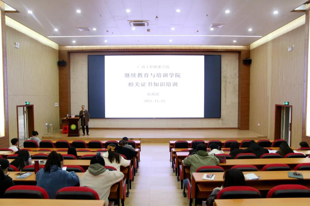 2021年11月23日下午,廣西工程職業(yè)學院2021年師資培訓工程第三期培訓在圖文信息大樓報告廳舉行,繼續(xù)教育與培訓學院科長陸源波作專題培訓,學校學生科長及輔導員參加培訓。