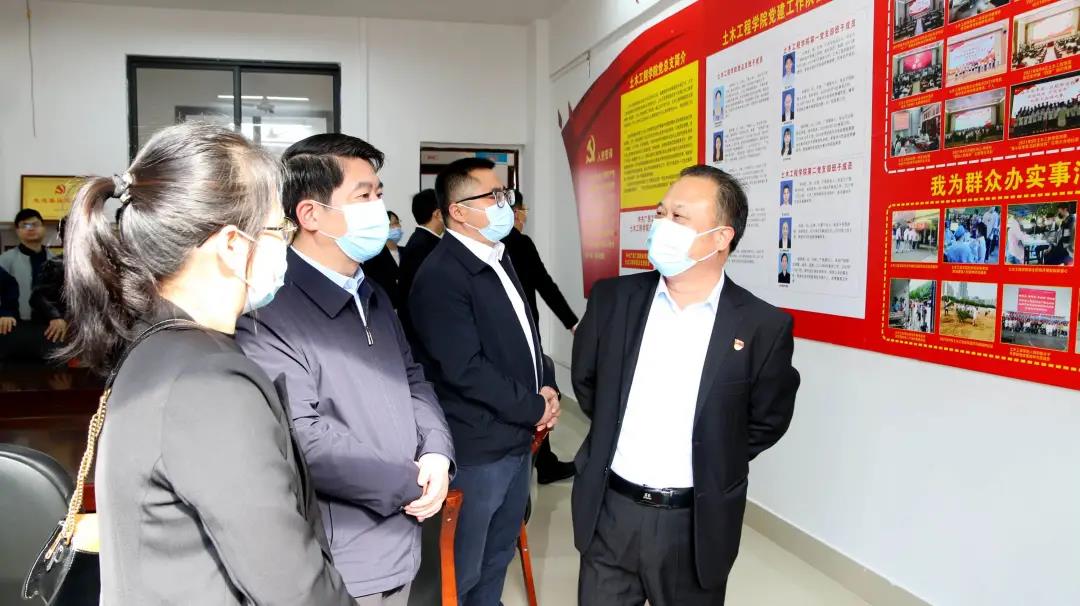 自治區(qū)黨委教育工委調(diào)研組李曉勇副書(shū)記一行先后實(shí)地走訪調(diào)研參觀了我校土木工程學(xué)院黨總支黨員活動(dòng)室、藝術(shù)設(shè)計(jì)學(xué)院黨支部黨建宣傳陣地及黨員活動(dòng)室、思政課教學(xué)部辦公室、黨史教育文化長(zhǎng)廊等教學(xué)教育場(chǎng)所。