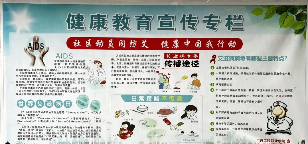 通過展板、宣傳欄知識(shí)宣傳及發(fā)放宣傳手冊(cè),告訴同學(xué)們?nèi)绾斡行ьA(yù)防艾滋病、識(shí)毒禁毒,珍愛生命,遠(yuǎn)離毒品。