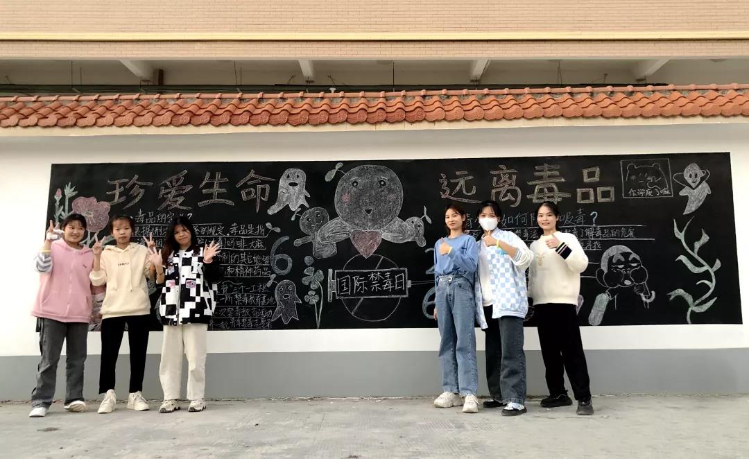 用心完成禁毒宣傳黑板報(bào)的同學(xué)們