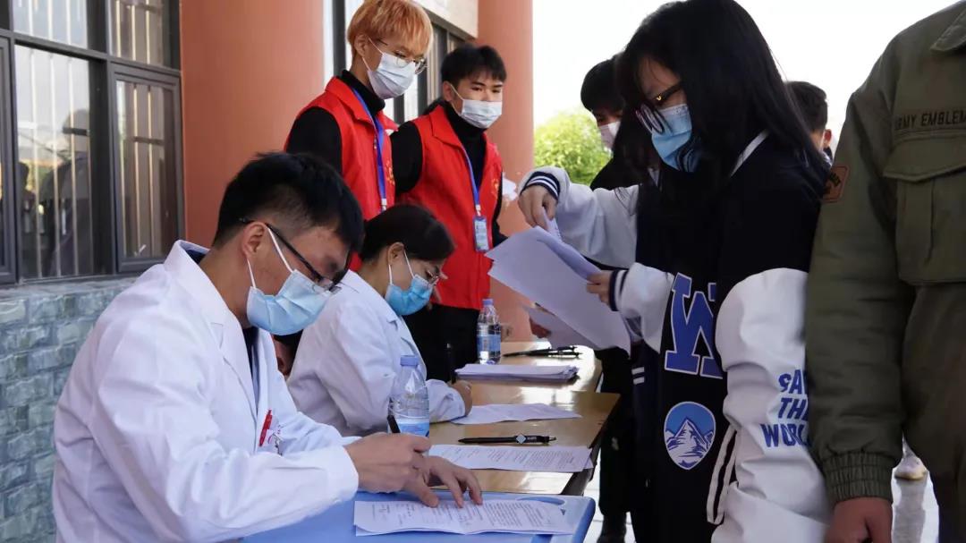 在學(xué)校的精心組織和志愿者的指導(dǎo)下,同學(xué)們有序進(jìn)行掃碼測(cè)溫、填表咨詢、信息核驗(yàn)、登記、接種等。