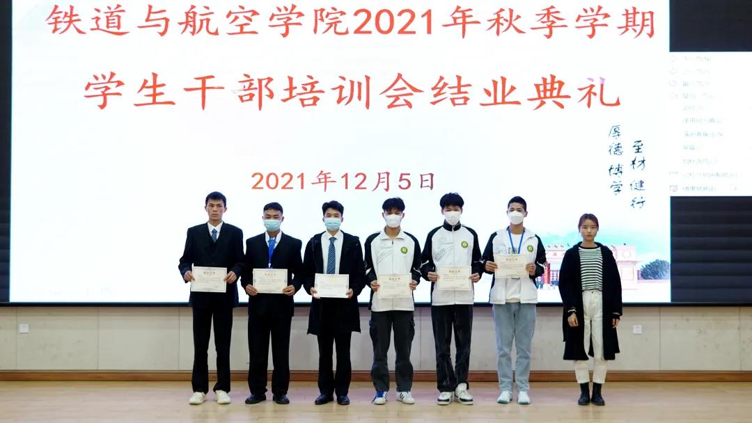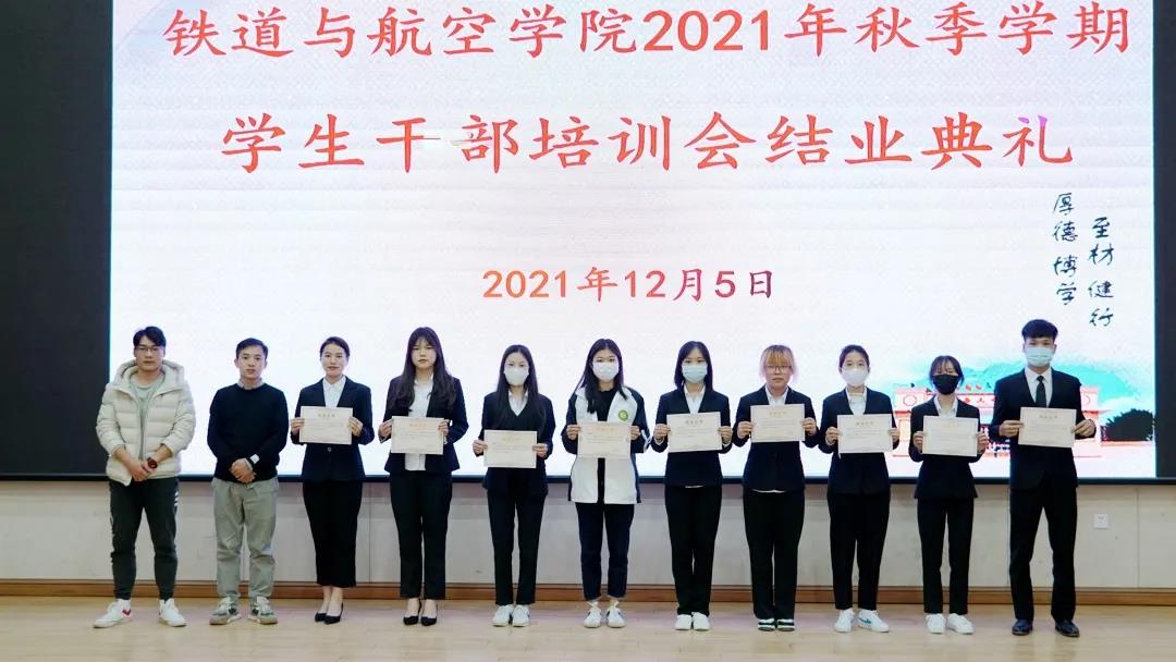 2021年秋季學(xué)期“明責(zé)任•增才干•做精英干部”培訓(xùn)班培訓(xùn)結(jié)束后,鐵道與航空學(xué)院舉行了結(jié)業(yè)典禮,出席典禮的老師為參訓(xùn)學(xué)生干部代表頒發(fā)了結(jié)業(yè)證書。