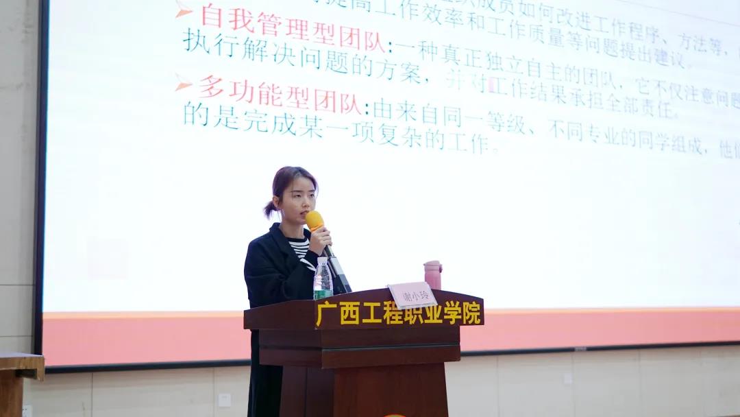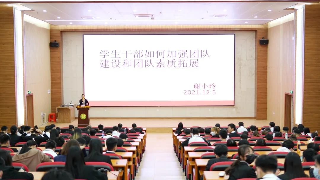 謝小玲老師作題為《學(xué)生干部如何加強(qiáng)團(tuán)隊(duì)建設(shè)和團(tuán)隊(duì)素質(zhì)拓展》的專題培訓(xùn)