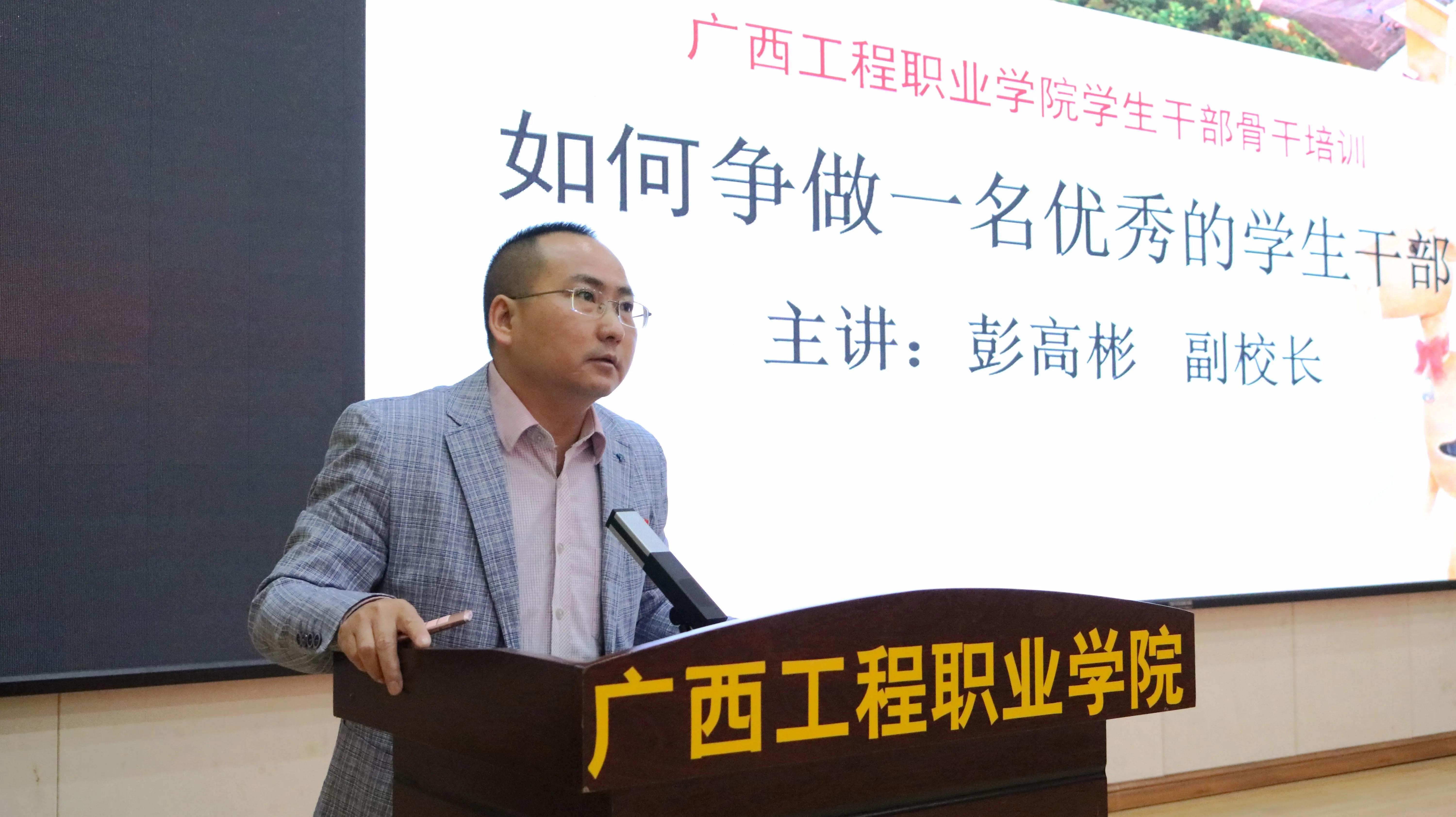 彭高彬副校長(zhǎng)在開班第一講中作題為《如何做一名優(yōu)秀的學(xué)生干部》的專題培訓(xùn)。