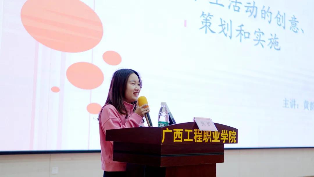 黃韻老師作題為《高校學(xué)生活動(dòng)的創(chuàng)意、策劃和實(shí)施》的專題培訓(xùn),她主要圍繞高校學(xué)生活動(dòng)策劃與實(shí)施、學(xué)生活動(dòng)創(chuàng)新等方面展開闡述,啟發(fā)同學(xué)們要不斷提高理論知識(shí)水平和工作能力,不斷開拓創(chuàng)新,增強(qiáng)活動(dòng)策劃能力、干事能力和應(yīng)急處置能力。