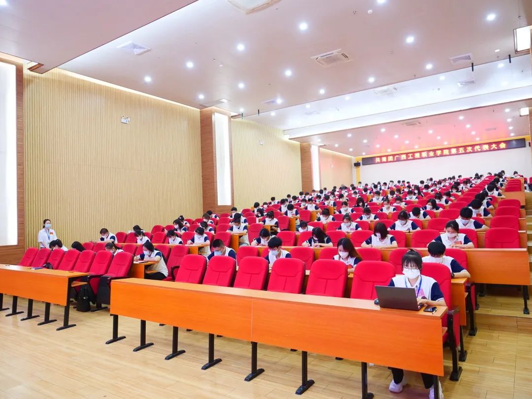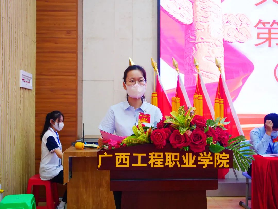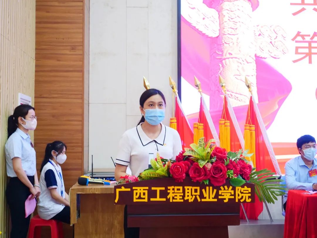 2022年4月28日,共青團廣西工程職業(yè)學(xué)院第五次代表大會在圖文信息大樓一樓學(xué)術(shù)報告廳舉行。共青團平果市委員會書記陸妍君,學(xué)校黨委副書記黃秋霞,學(xué)校黨委委員、經(jīng)濟管理學(xué)院院長龐英連,學(xué)校黨委委員、學(xué)生工作處副處長李麗詩,鐵道與航空學(xué)院黨支部書記、院長覃鳳姣,黨委辦公室副主任黃香琴,汽車與機電學(xué)院副院長梁欣欣,思政課教學(xué)部副主任吳發(fā)德,國防科技學(xué)院副院長李捷,土木工程學(xué)院副院長楊竟,土木工程學(xué)院分團委書記陳春任,汽車與機電學(xué)院分團委書記楊小櫻,鐵道與航空學(xué)院分團委書記謝小玲、藝術(shù)設(shè)計學(xué)院分團委書記龍金妹、教育學(xué)院分團委書記盧燕梅、校團委黃詩晴,以及第五屆團委委員候選人出席了此次大會。大會由校團委書記梁鳳琴主持。