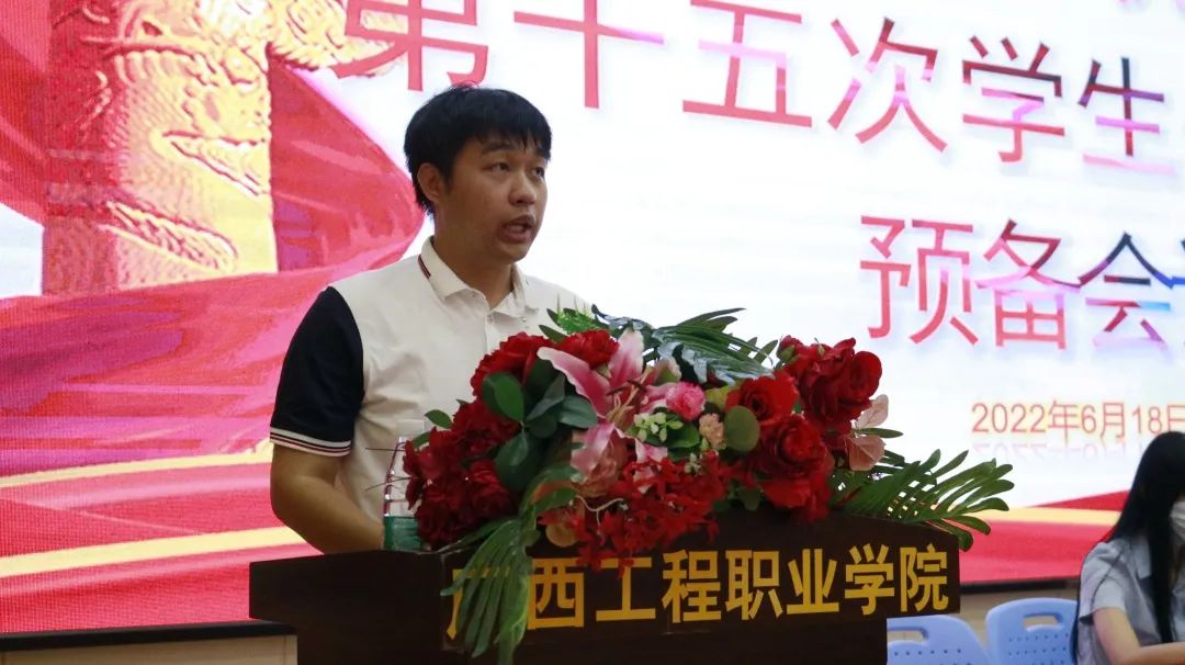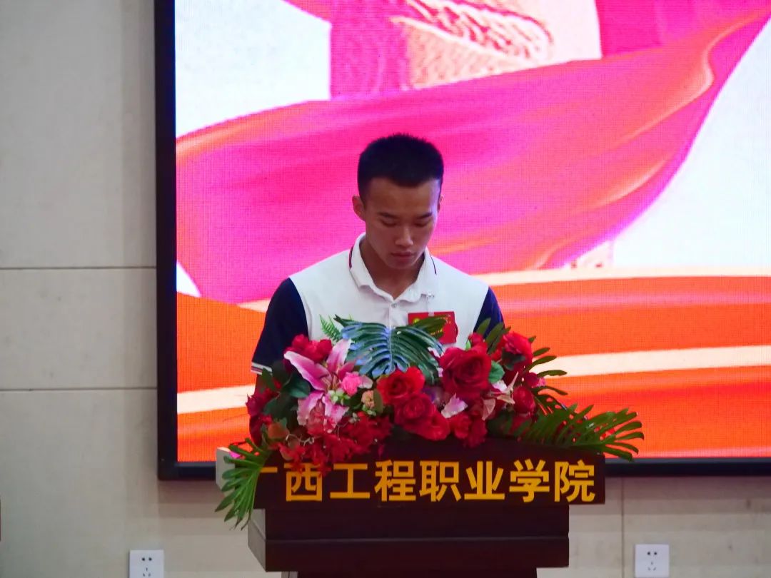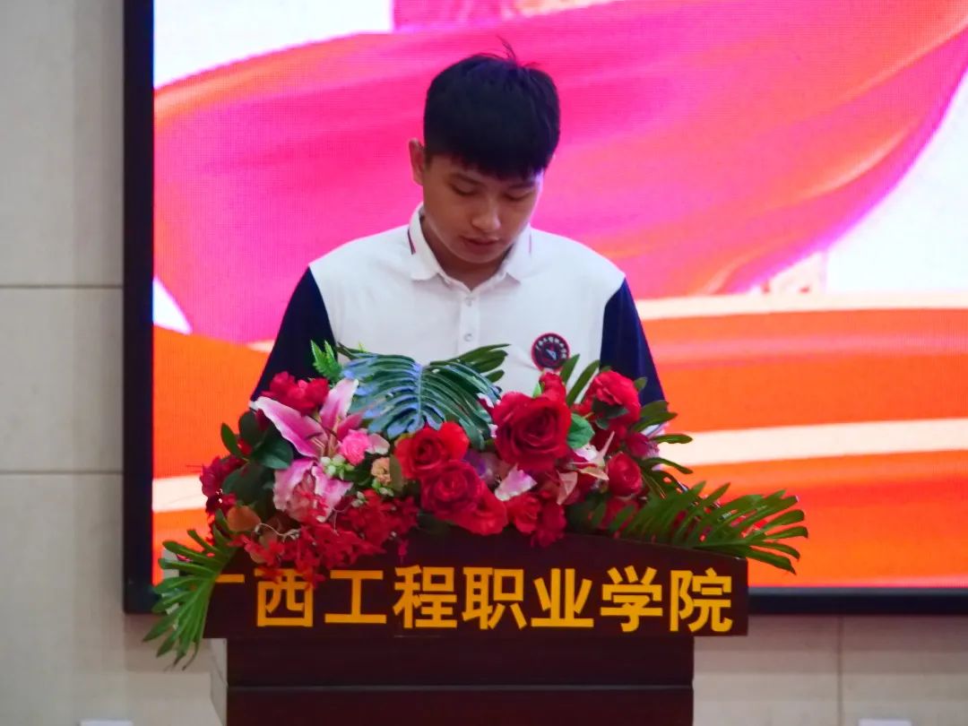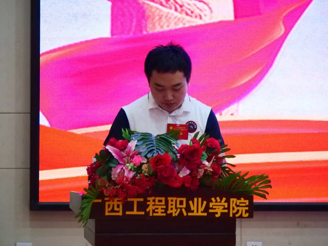 第十五屆學(xué)生會(huì)紀(jì)檢部部長(zhǎng)李茂澤宣讀《廣西工程職業(yè)學(xué)院學(xué)生會(huì)章程》