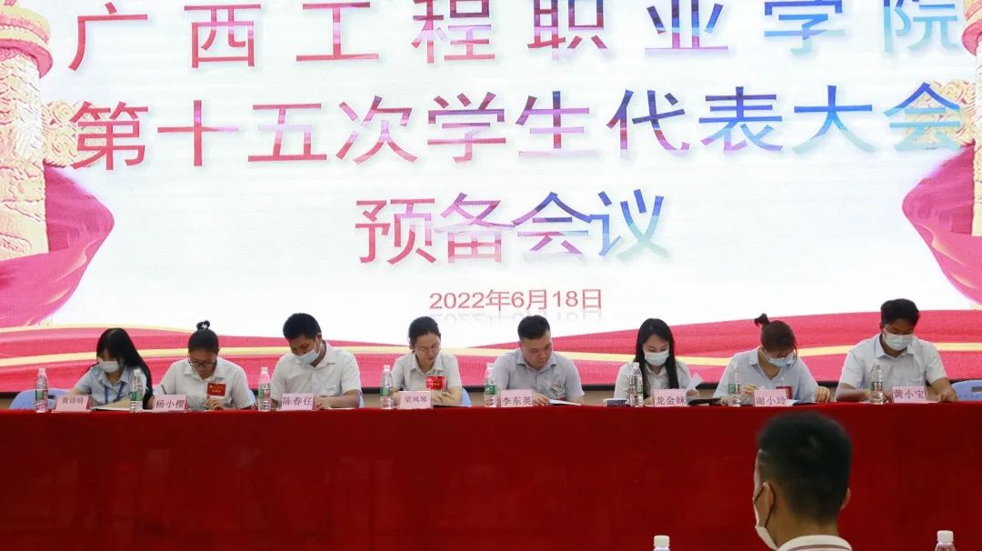 在第十五次學(xué)生代表大會(huì)預(yù)備會(huì)議上,代表們聽取了《廣西工程職業(yè)學(xué)院第十五次學(xué)生代表大會(huì)籌備工作報(bào)告》、《廣西工程職業(yè)學(xué)院第十五次學(xué)生代表大會(huì)代表資格審查報(bào)告》、《廣西工程職業(yè)學(xué)院第十五次學(xué)生代表大會(huì)代表選舉辦法》,通過舉手表決的方式,審議通過了《廣西工程職業(yè)學(xué)院第十五次學(xué)生代表大會(huì)議程(正式會(huì)議)》、《廣西工程職業(yè)學(xué)院第十五次學(xué)生代表大會(huì)主席團(tuán)、執(zhí)行主席名單(草案)》和《廣西工程職業(yè)學(xué)院第十五次學(xué)生代表大會(huì)秘書長(zhǎng)、副秘書長(zhǎng)名單(草案)》。