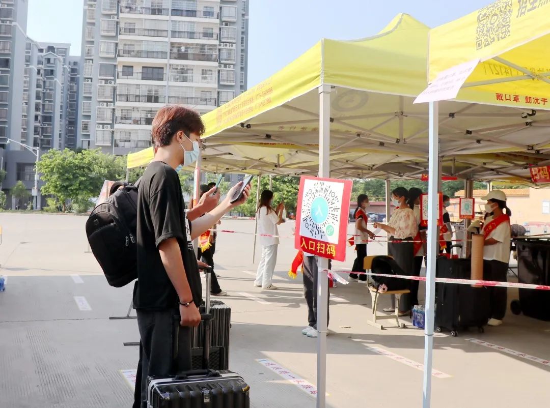 迎新期間,學(xué)校設(shè)置了校外、校內(nèi)迎新點(diǎn)和安全報(bào)到通道,要求全程佩戴口罩、測量體溫、查驗(yàn)“雙碼”、48小時(shí)內(nèi)核酸檢測陰性證明及一鍵直報(bào)等,通過安全通道后進(jìn)入校園。入校后,學(xué)校實(shí)施嚴(yán)格的“三天兩檢”制度,切實(shí)維護(hù)疫情防控下校園的穩(wěn)定和學(xué)生安全,為新生們筑起了堅(jiān)固又溫暖的抗疫防線。