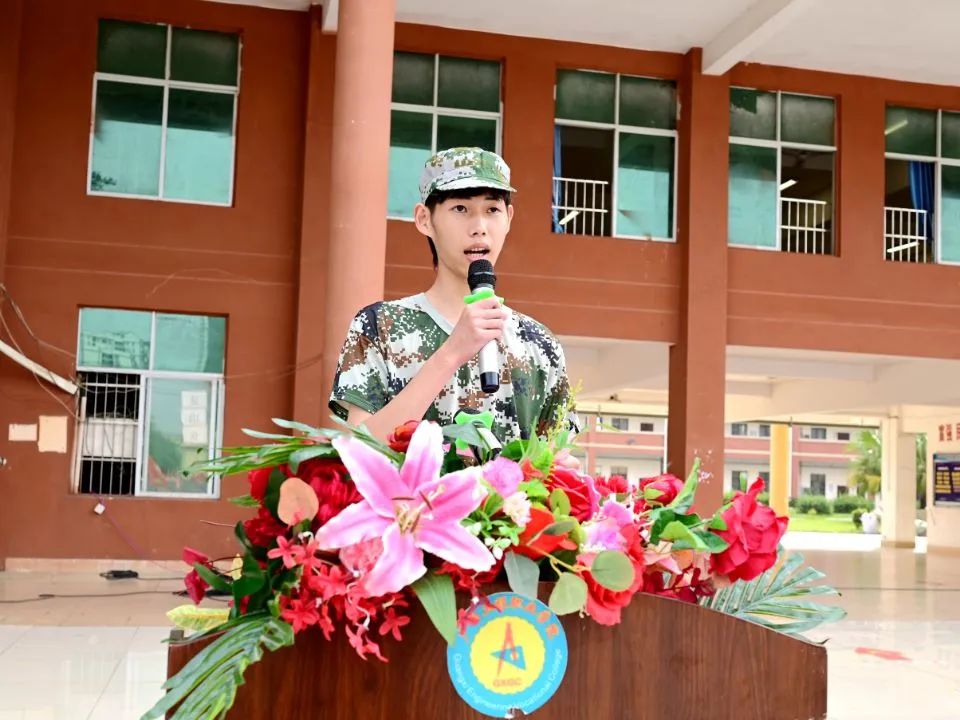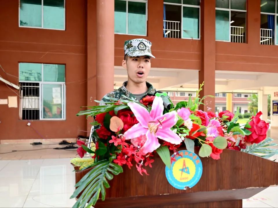 新生代表2022級(jí)藝術(shù)設(shè)計(jì)學(xué)院蔣明翰同學(xué)發(fā)言,表示全體新生要以軍人的身份,刻苦訓(xùn)練,嚴(yán)守紀(jì)律,聽從指揮,服從命令,磨煉意志,不怕困難,尊敬老師,尊敬教官,爭做優(yōu)秀學(xué)員。以飽滿的熱情、堅(jiān)強(qiáng)的毅力去迎接軍訓(xùn)中的各種挑戰(zhàn),讓青春在軍訓(xùn)中綻放得更加奪目燦爛!