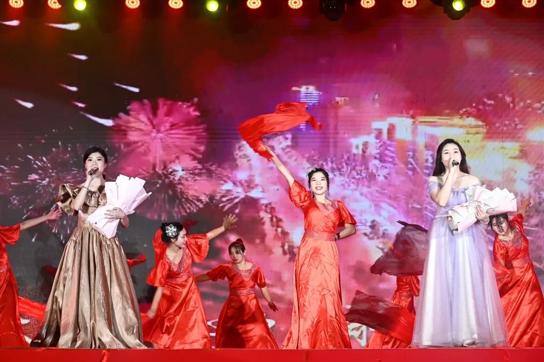 晚會(huì)現(xiàn)場(chǎng),舞獅、舞蹈、歌曲、朗誦、情景劇等多種類型的節(jié)目精彩紛呈、輪番上演,舞美效果美輪美奐。全場(chǎng)觀眾不斷揮舞著熒光棒,沉浸在校慶晚會(huì)無比歡快的氛圍中。