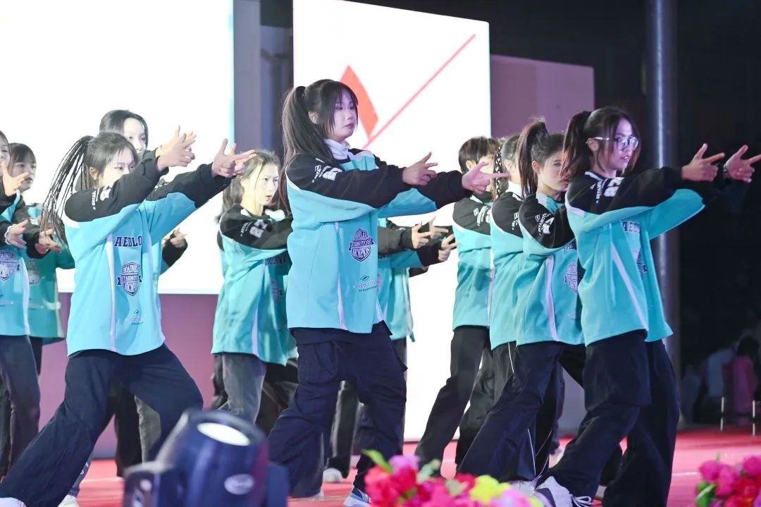 十分具有節(jié)奏感的舞蹈,將現(xiàn)場(chǎng)氣氛推至高潮,場(chǎng)下同學(xué)們的掌聲經(jīng)久不息,她們?cè)谖枧_(tái)上用舞步踏出青春的節(jié)拍。