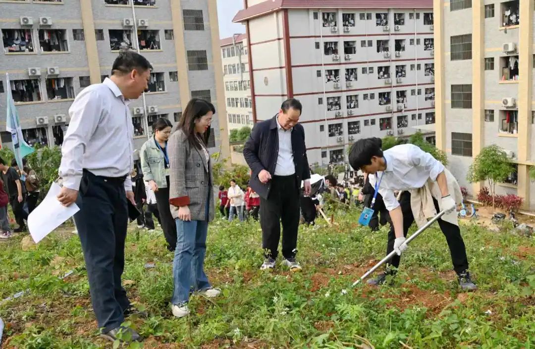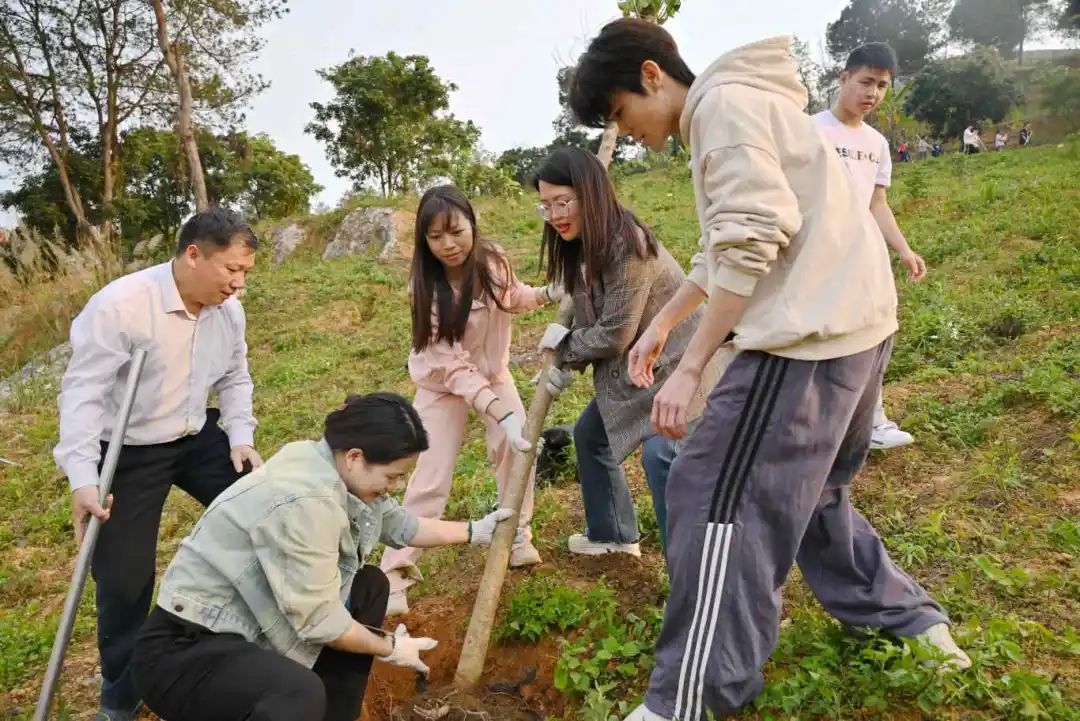 黨委書記、督導專員蒙本曼,黨委副書記黃秋霞等校領導帶領師生共同行動,開展植樹活動,為校園增添新綠,為生態(tài)文明建設貢獻自己的力量。