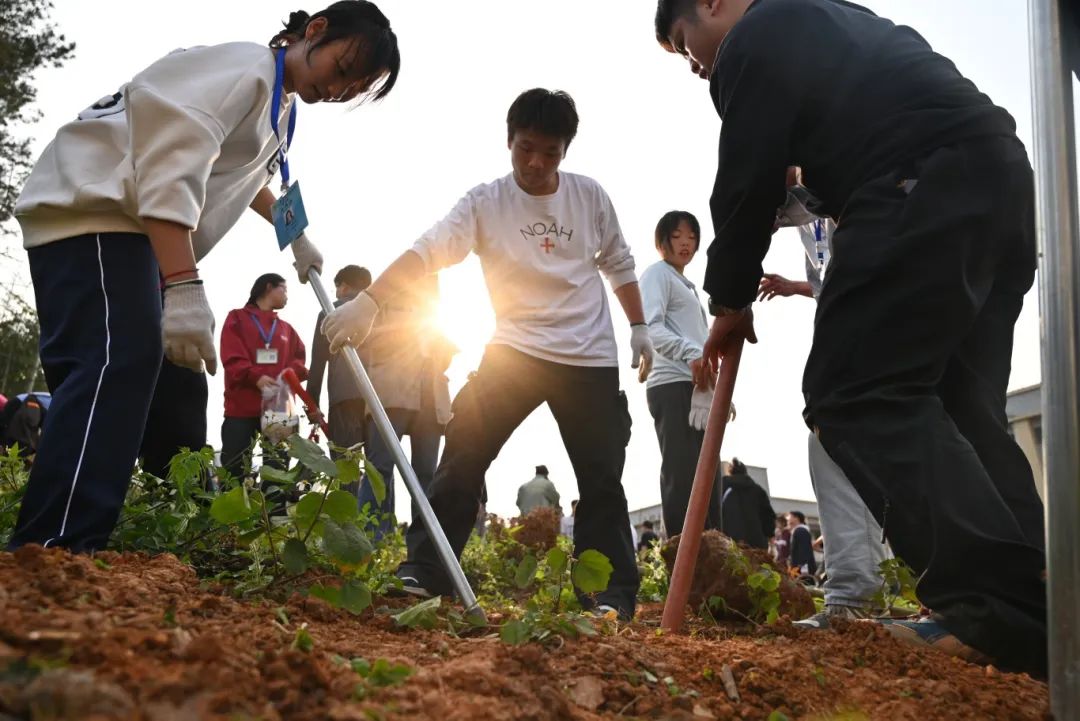 植樹現場,熱火朝天,歡聲笑語。師生們在參與植樹中進一步弘揚了植綠、護綠、愛綠的文化新風,增強了建設美麗家園、保護生態(tài)環(huán)境的責任和意識,提高了學校勞動教育實踐性及師生環(huán)保意識。師生們紛紛表示,要像樹苗一樣,努力向下扎根,打牢基礎,奮力向上生長,齊心干事創(chuàng)業(yè),為推動學校高質量發(fā)展做出應有的貢獻。