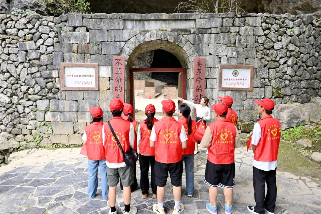 實(shí)踐團(tuán)和服務(wù)團(tuán)成員在講解員的帶領(lǐng)下,先后到廣西農(nóng)民運(yùn)動(dòng)講習(xí)所舊址列寧巖、韋拔群故居、中共紅七軍前委舊址魁星樓等地參觀學(xué)習(xí),追憶革命先輩,重溫革命歲月,接受革命精神洗禮,深刻感受了革命先烈為新中國(guó)勝利所付出的艱辛和犧牲,堅(jiān)定了理想信念,強(qiáng)化了青年使命擔(dān)當(dāng)。大家參觀后,感慨萬分。在列寧巖,被革命先烈在這艱苦的條件下奮勇斗爭(zhēng)的精神所折服。在韋拔群故居,回顧這位中國(guó)早期著名農(nóng)民運(yùn)動(dòng)領(lǐng)袖領(lǐng)導(dǎo)人的光輝奮斗歷程,為英雄不幸犧牲而悲痛惋惜;感受到了韋拔群等先烈在如此簡(jiǎn)陋的環(huán)境下,克服重重困難,堅(jiān)持革命,為廣西農(nóng)民運(yùn)動(dòng)和革命事業(yè)作出了巨大貢獻(xiàn)。在魁星樓,大家了解到了老一輩無產(chǎn)階級(jí)革命家鄧小平和張?jiān)埔莸韧倔@天動(dòng)地的豐功偉績(jī),深刻感受到了先烈們?yōu)楦锩鼊倮宫F(xiàn)的堅(jiān)定不移的革命理想信念。