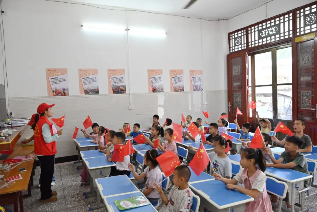 志愿者教孩子們唱歌《歌唱祖國(guó)》