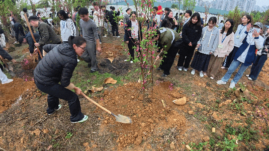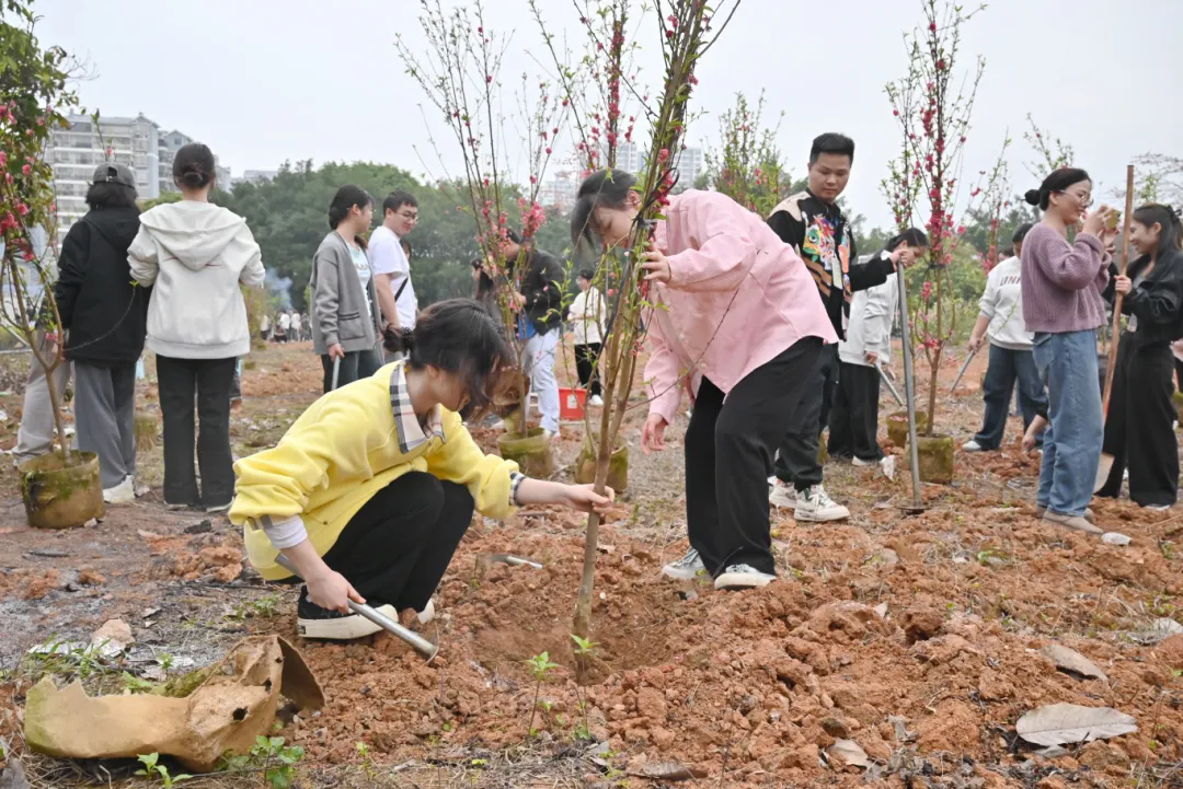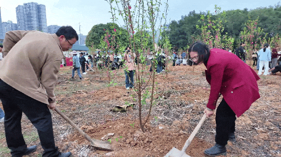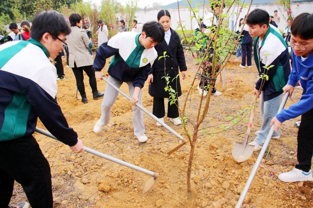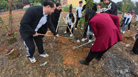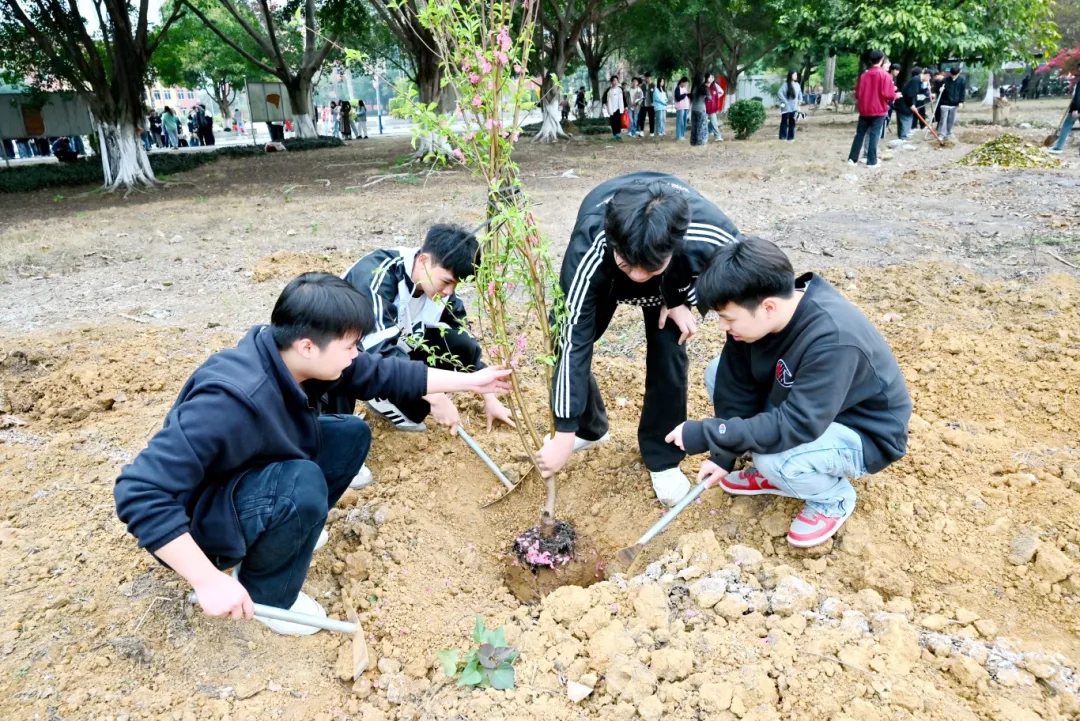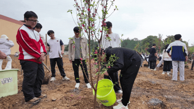 在黨委書記、督導(dǎo)專員蒙本曼,副校長黃德偉、蔣茂麗等校領(lǐng)導(dǎo)的帶領(lǐng)下,廣大師生代表齊心協(xié)力、相互配合,共同栽種桃花樹苗,為建設(shè)美麗校園增綠添彩。