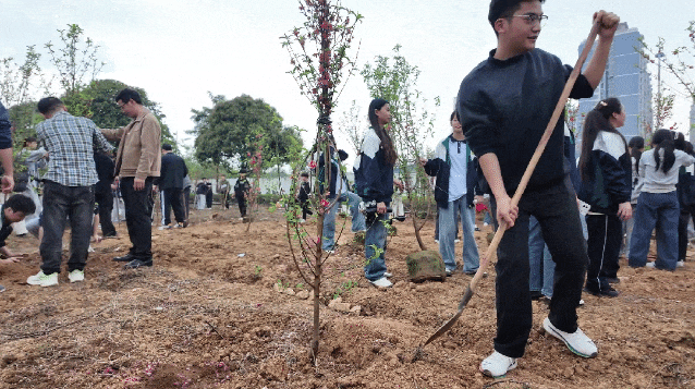 植樹現(xiàn)場,大家分工協(xié)作,清理雜草、揮鍬鏟土、扶苗培土、提桶澆水,有條不紊,熱火朝天。通過師生的共同努力,校園環(huán)境變得更加整潔、美觀,充滿了生機(jī)與活力。