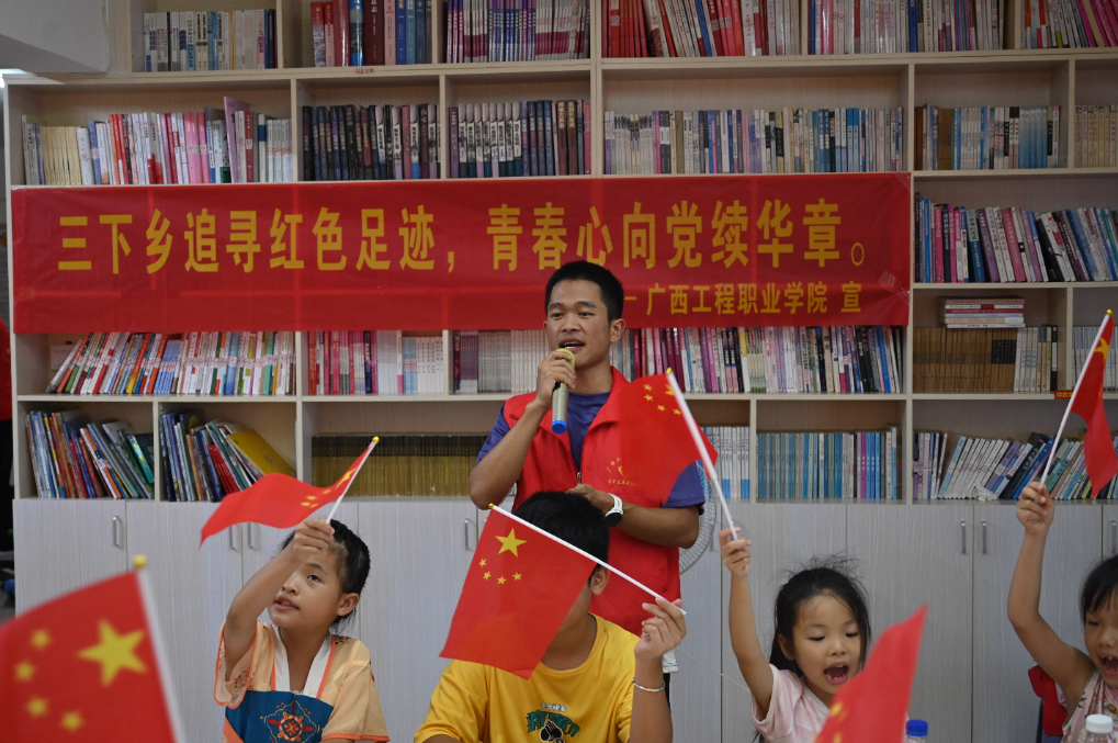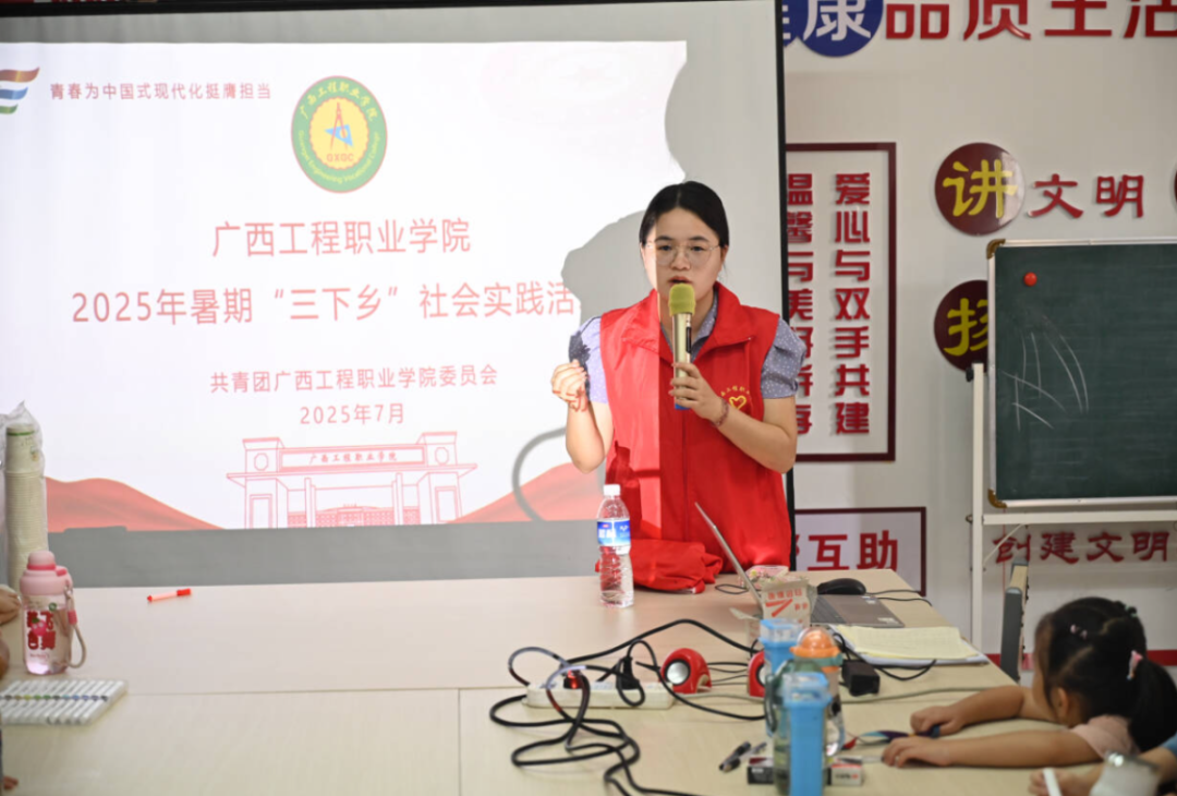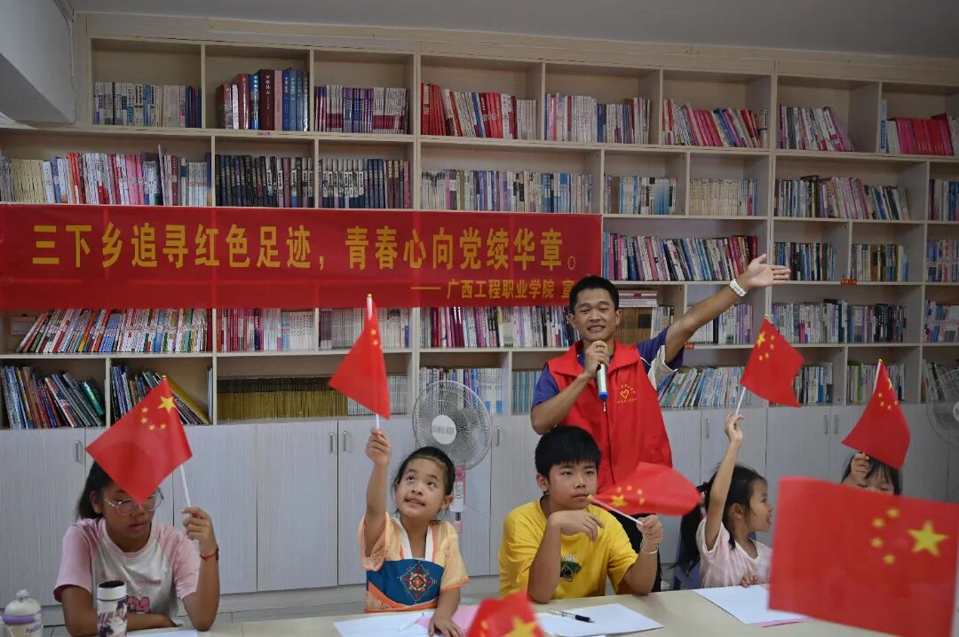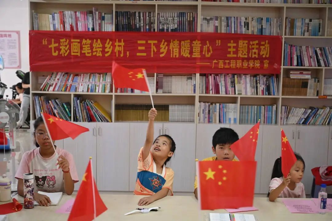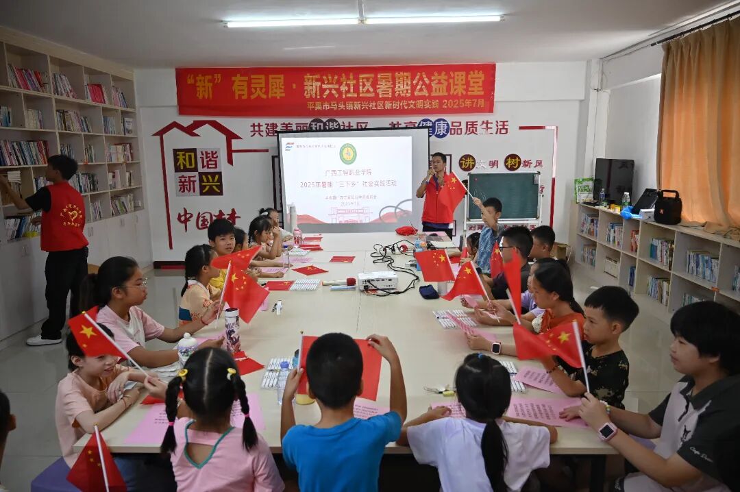 2025年7月14日,廣西工程職業(yè)學院“紅色研學踐初心·青春聚力促振興”實踐團、廣西工程職業(yè)學院“青春先鋒行,筑夢在基層”服務團走進平果市新興社區(qū)開展暑期公益課堂。通過組織開展唱愛國歌曲、愛國主題繪畫創(chuàng)作等豐富多彩的藝術活動,在培養(yǎng)孩子們藝術審美能力的同時,讓愛國主義精神在幼小心靈中生根發(fā)芽。