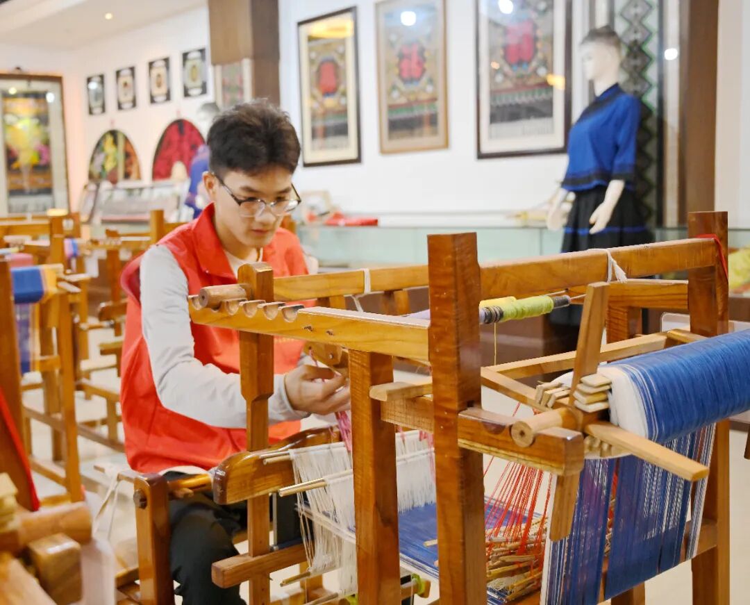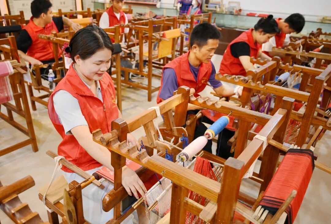 成員們操作織機,感受古老的紡織智慧,在一挑一織間,解鎖新體驗。