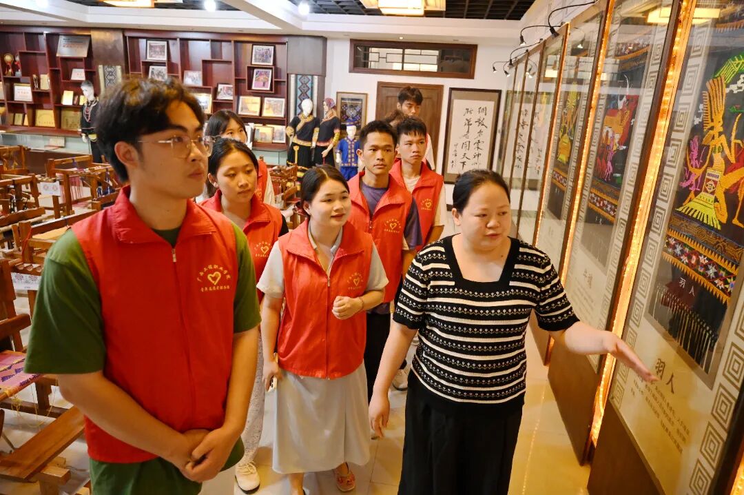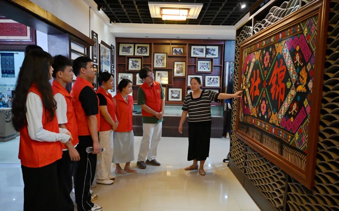 工作人員還為成員們詳細講解了壯錦的歷史淵源、文化內涵以及圖案寓意。