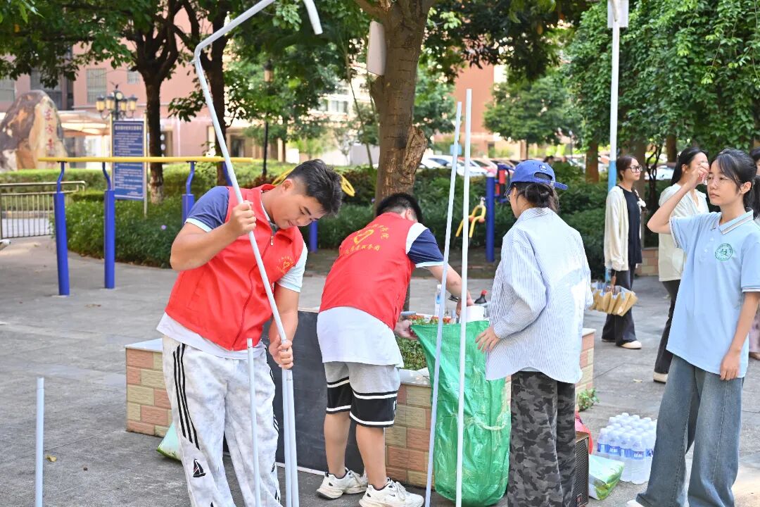 活動現(xiàn)場,志愿者們身著紅色馬甲,正默契配合組裝活動器具,志愿者分工協(xié)作、有條不紊,為后續(xù)活動的順利開展做好準備工作,展現(xiàn)出高效的團隊協(xié)作精神。