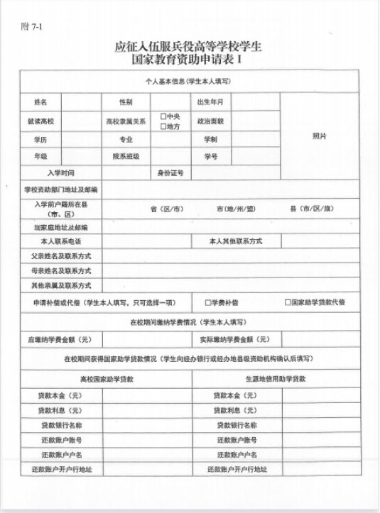 1.應征入伍服兵役高等學校學生國家教育資助申請表Ⅰ