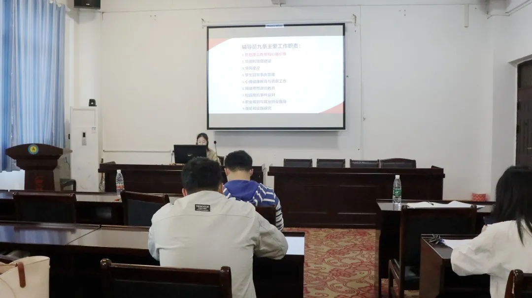 覃蘭蘭老師就輔導(dǎo)員九條工作職責(zé)及談心談話技巧進(jìn)行了經(jīng)驗(yàn)交流