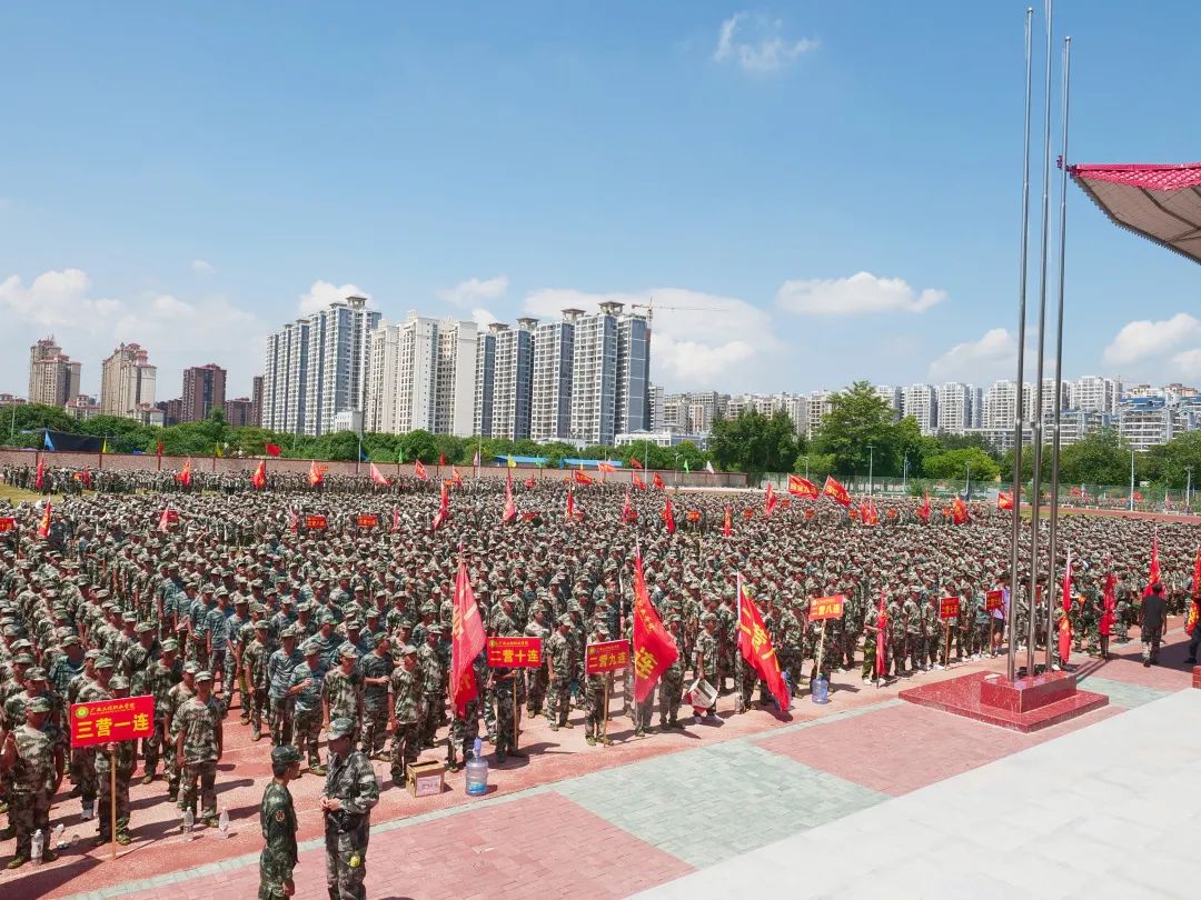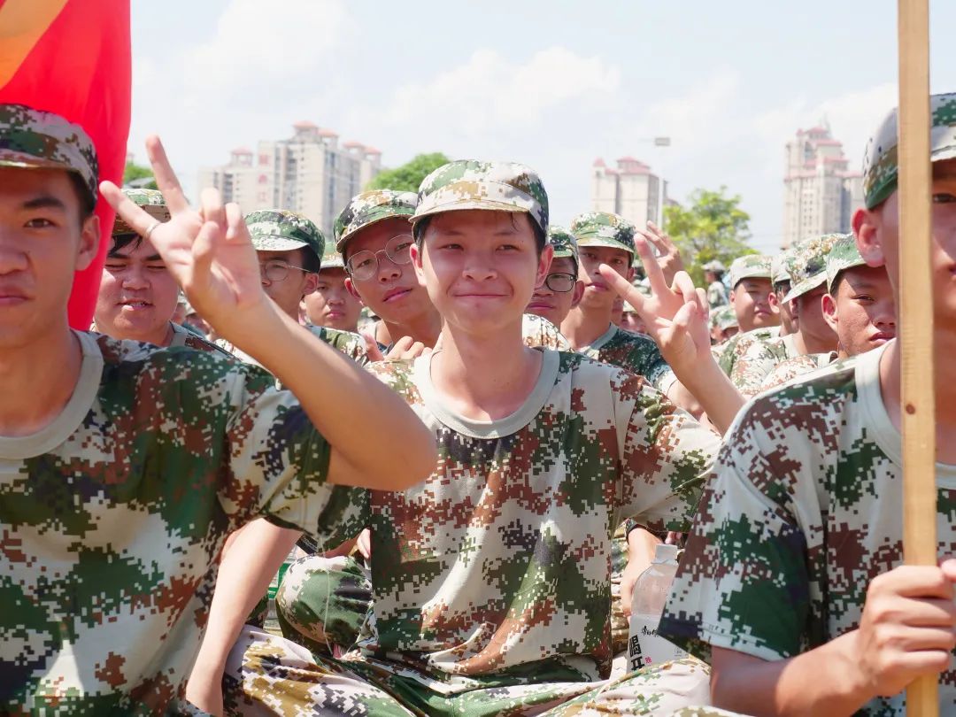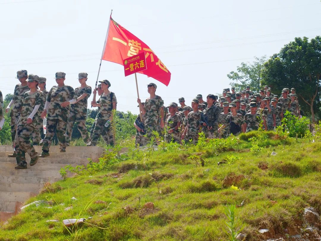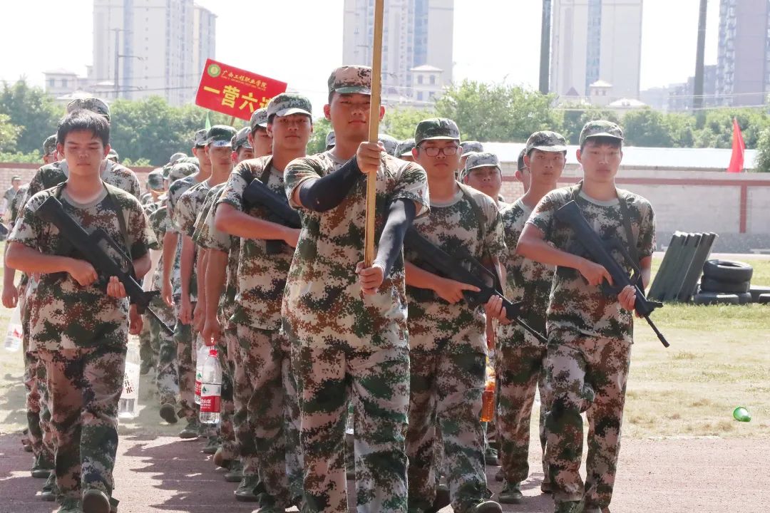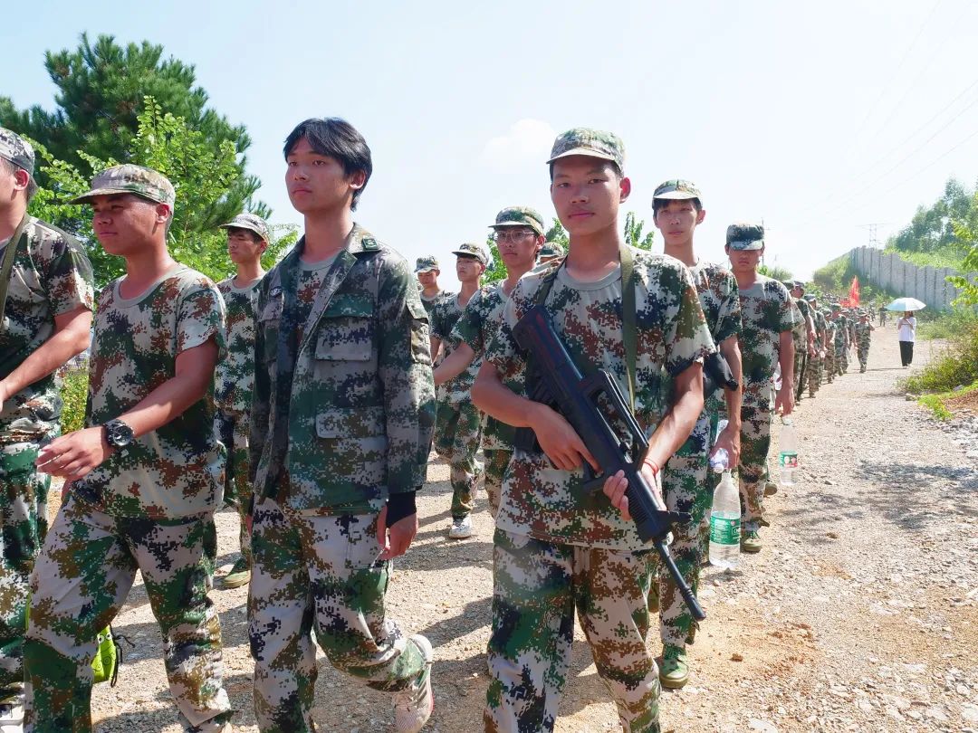 一陣陣口號(hào)聲嘹亮鏗鏘,同學(xué)們穿著整齊的軍服