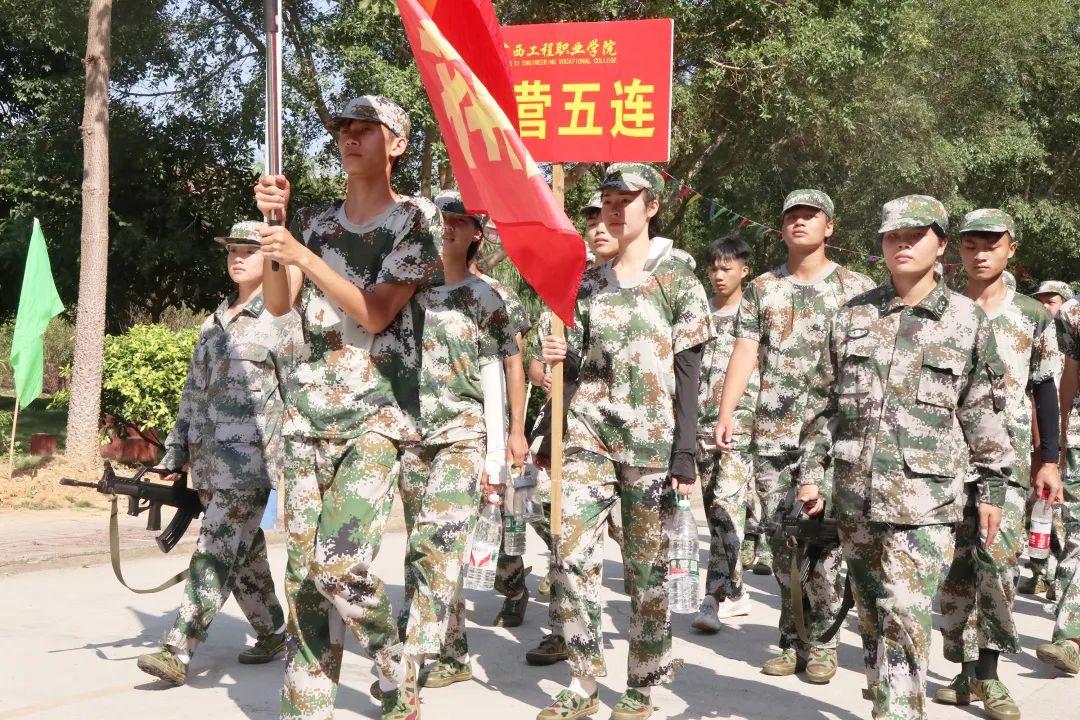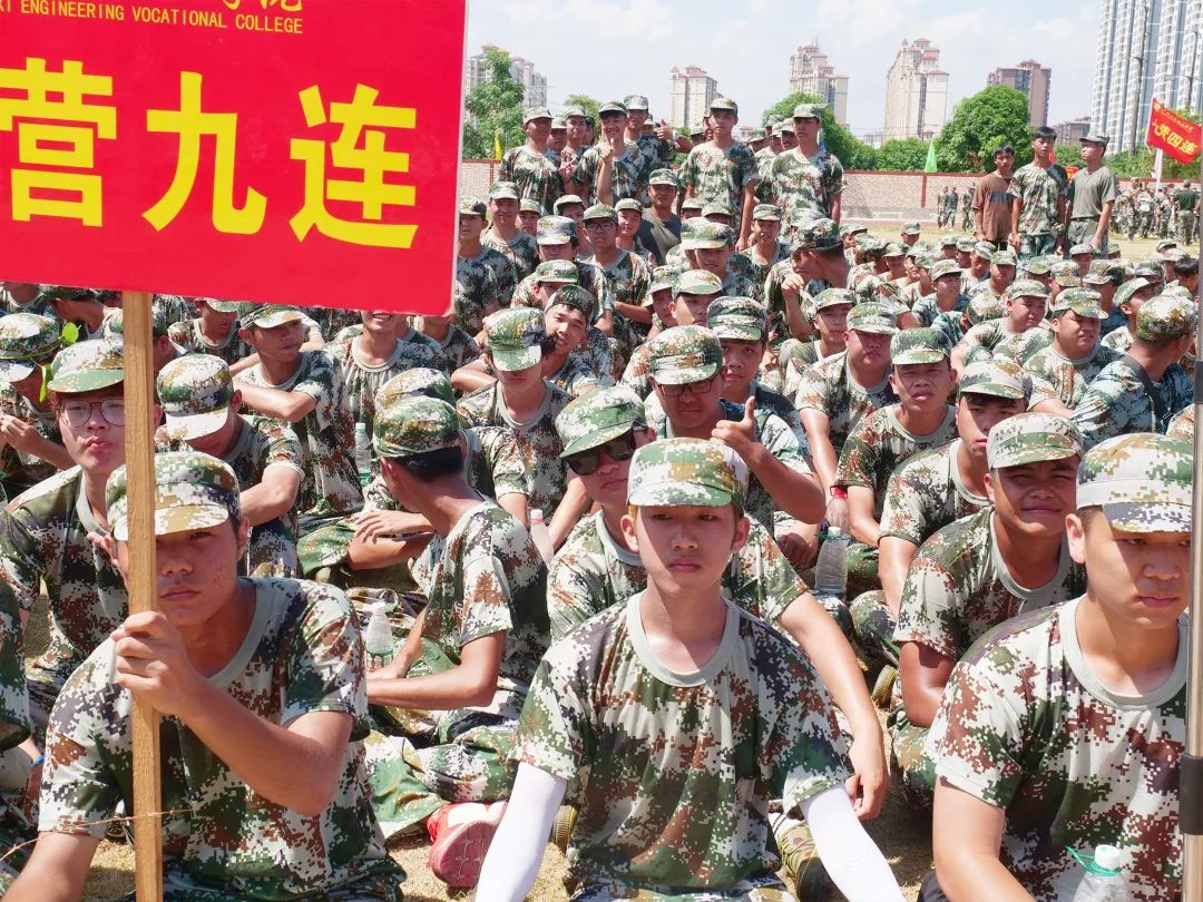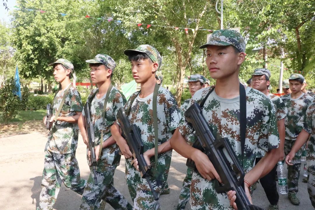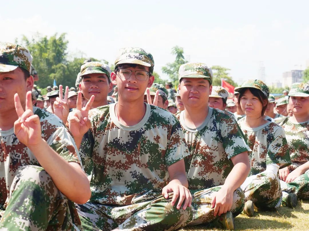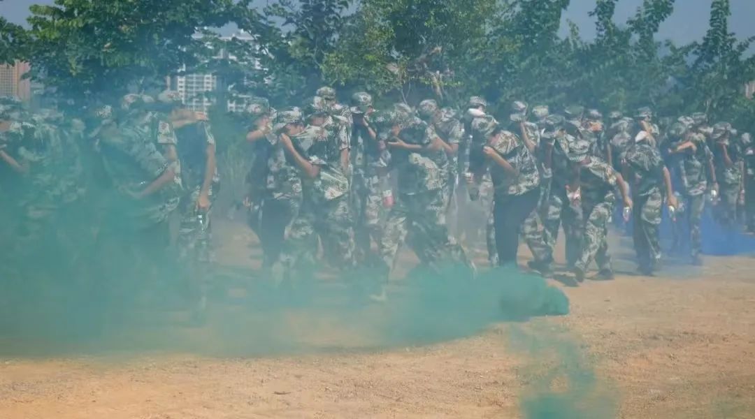 一陣陣口號(hào)聲嘹亮鏗鏘,同學(xué)們穿著整齊的軍服