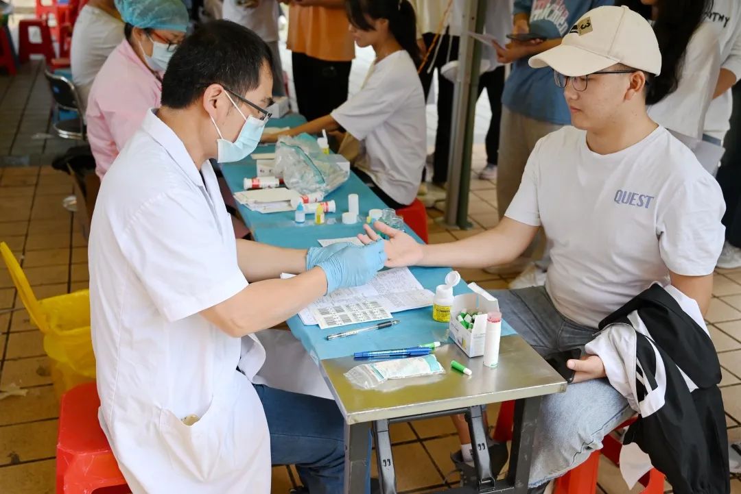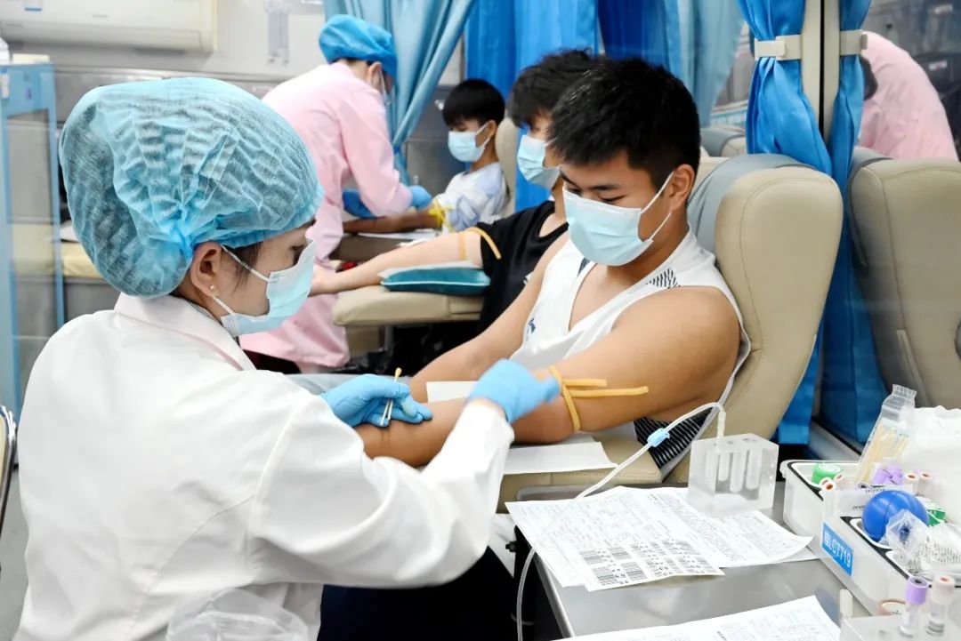 符合條件的志愿者依次進(jìn)行采血、獻(xiàn)血