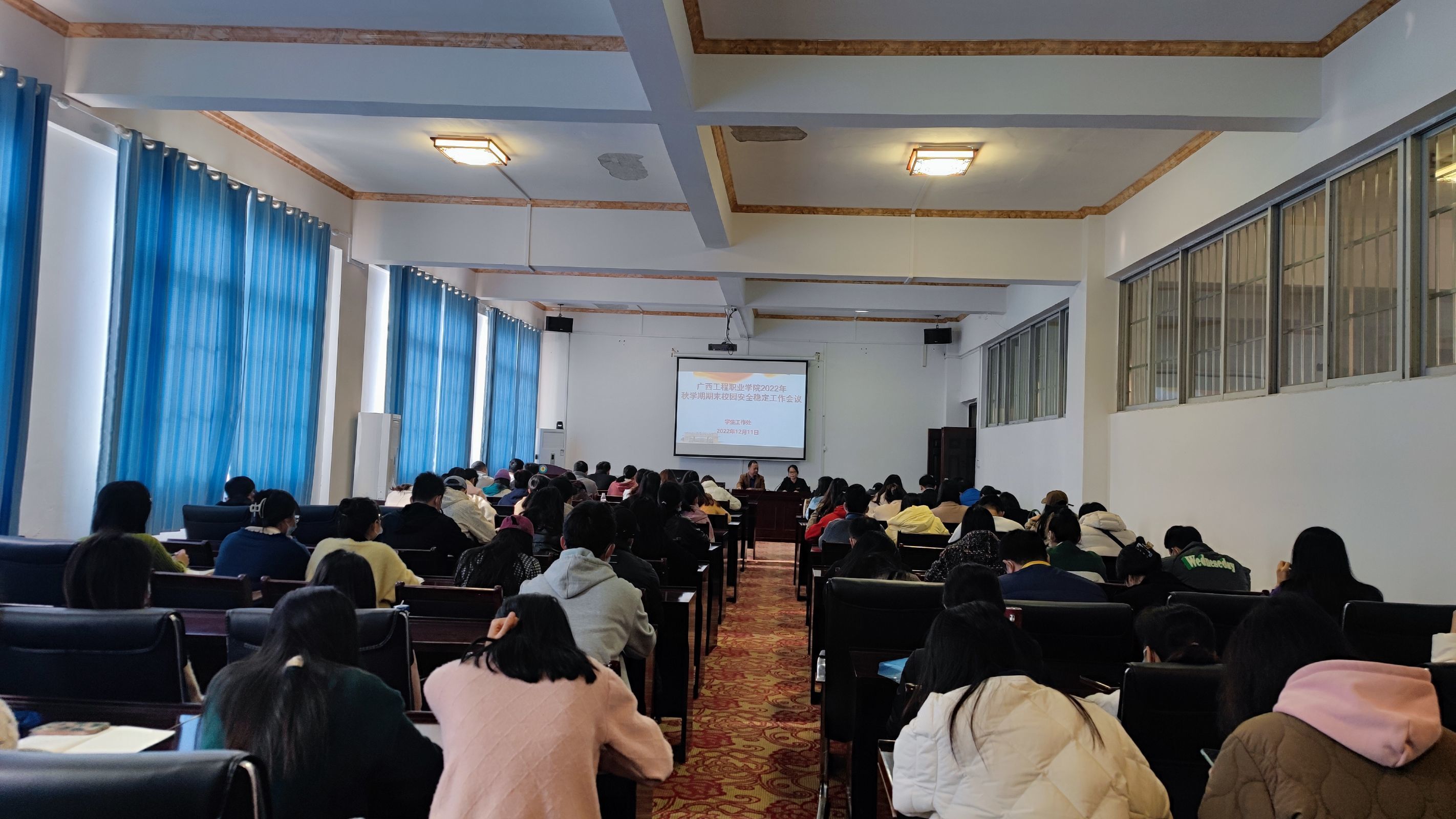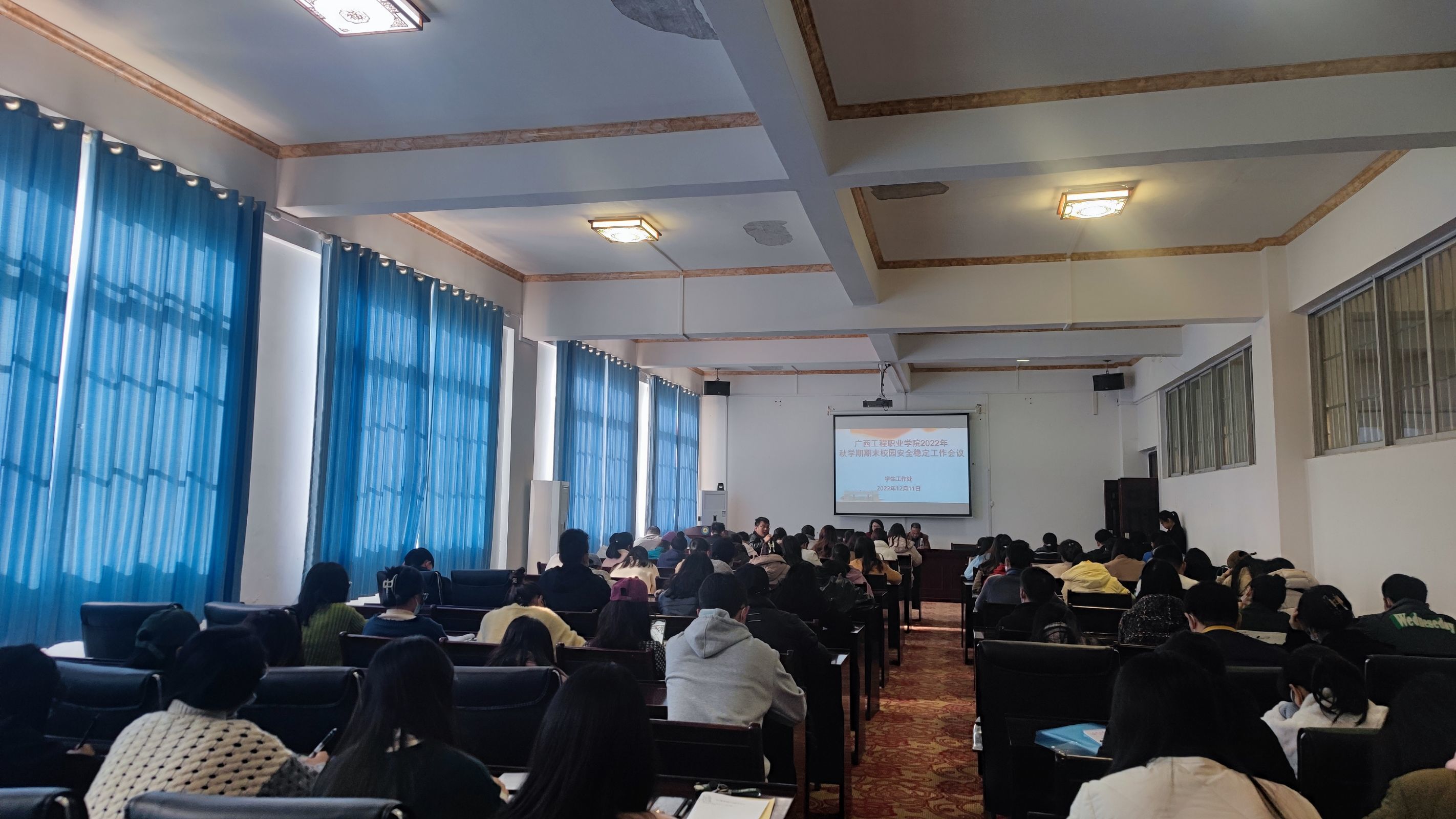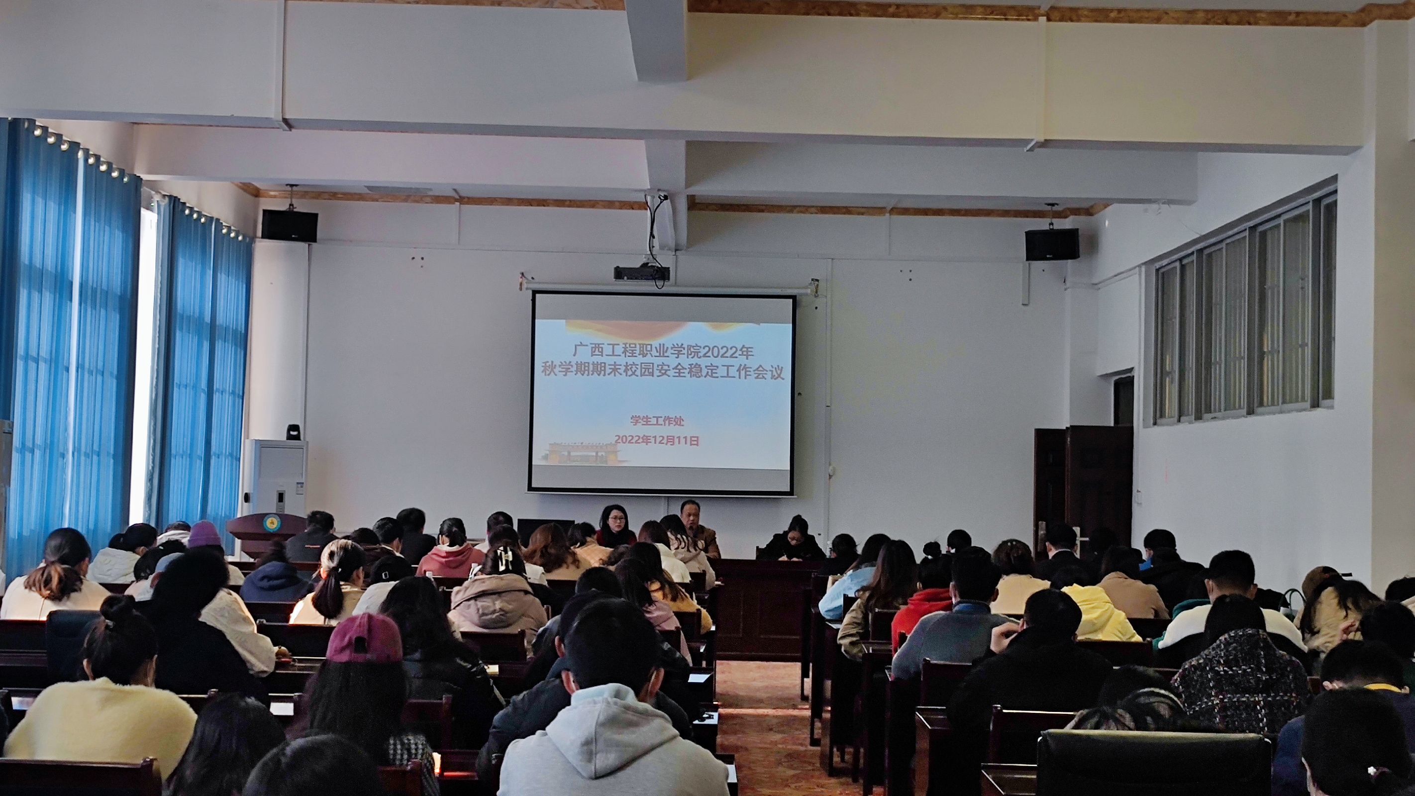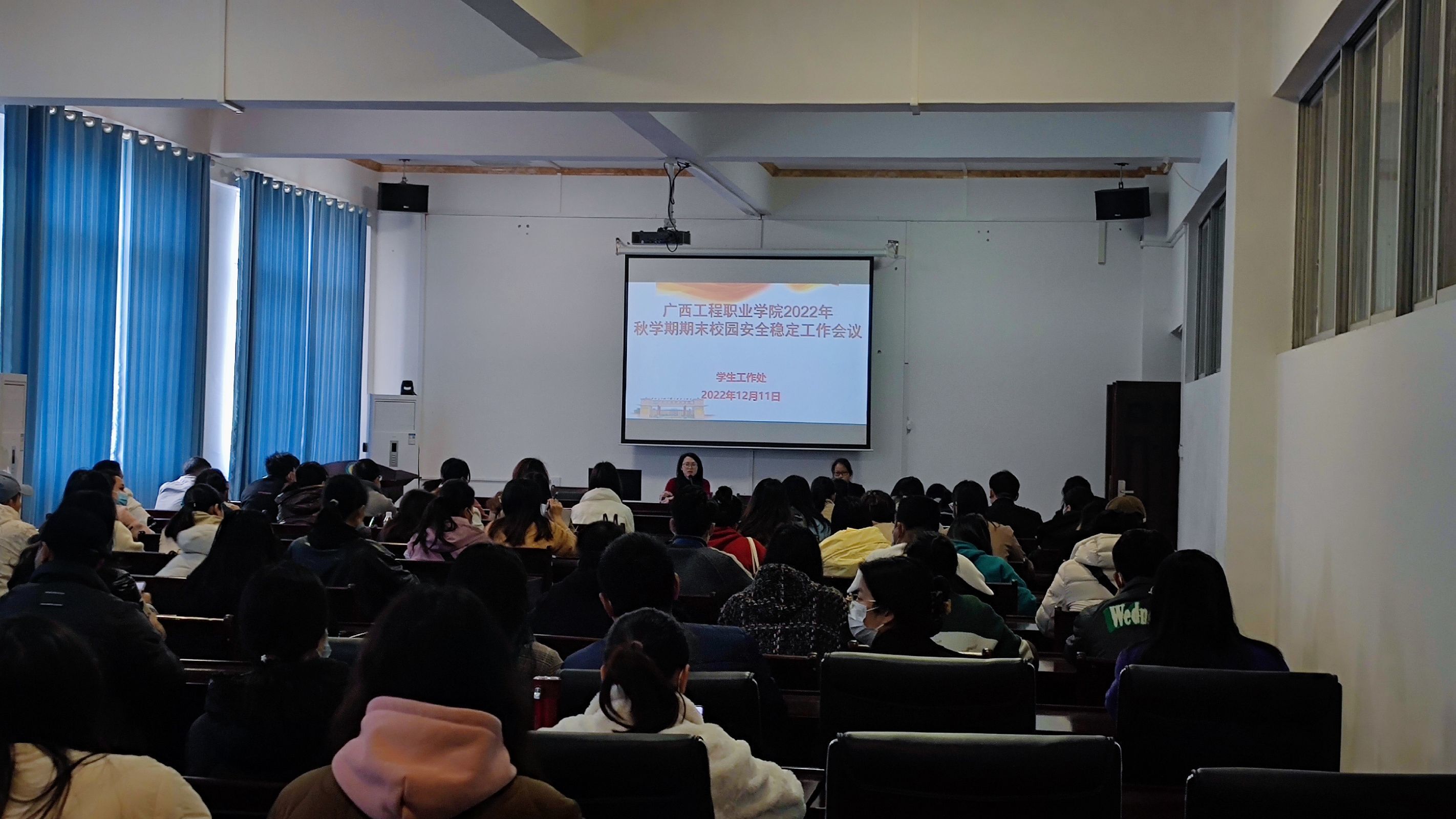 12月11日,我校學(xué)生工作處在圖書(shū)館一樓學(xué)術(shù)報(bào)告廳召開(kāi)2022年秋學(xué)期期末校園安全穩(wěn)定工作會(huì)議,學(xué)校董事長(zhǎng)李益、學(xué)校黨委副書(shū)記黃秋霞、學(xué)生工作處副處長(zhǎng)李麗詩(shī)、二級(jí)學(xué)院院長(zhǎng)、科長(zhǎng)、副書(shū)記、輔導(dǎo)員參加會(huì)議。會(huì)議由學(xué)生工作處副處長(zhǎng)李麗詩(shī)主持。