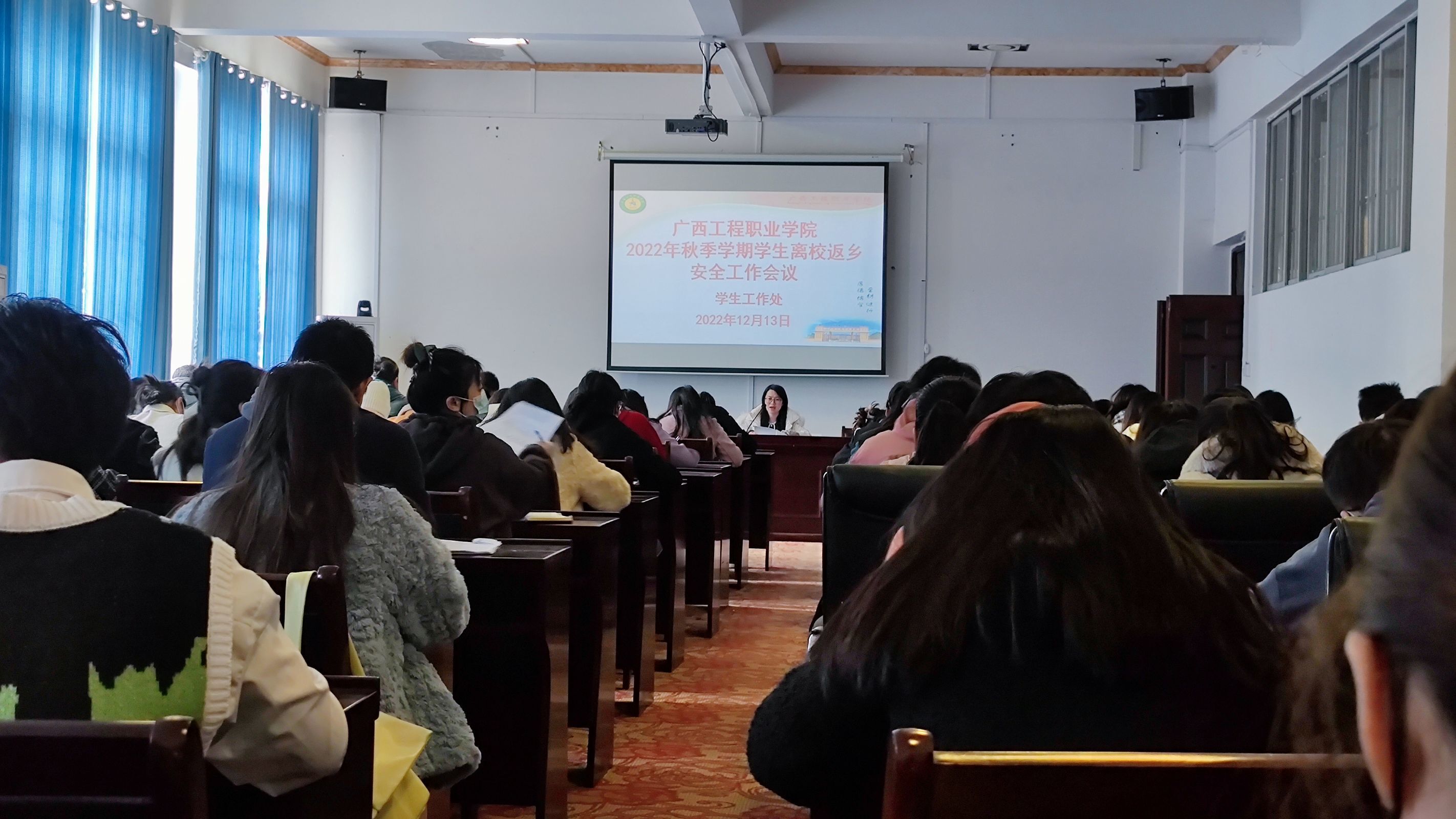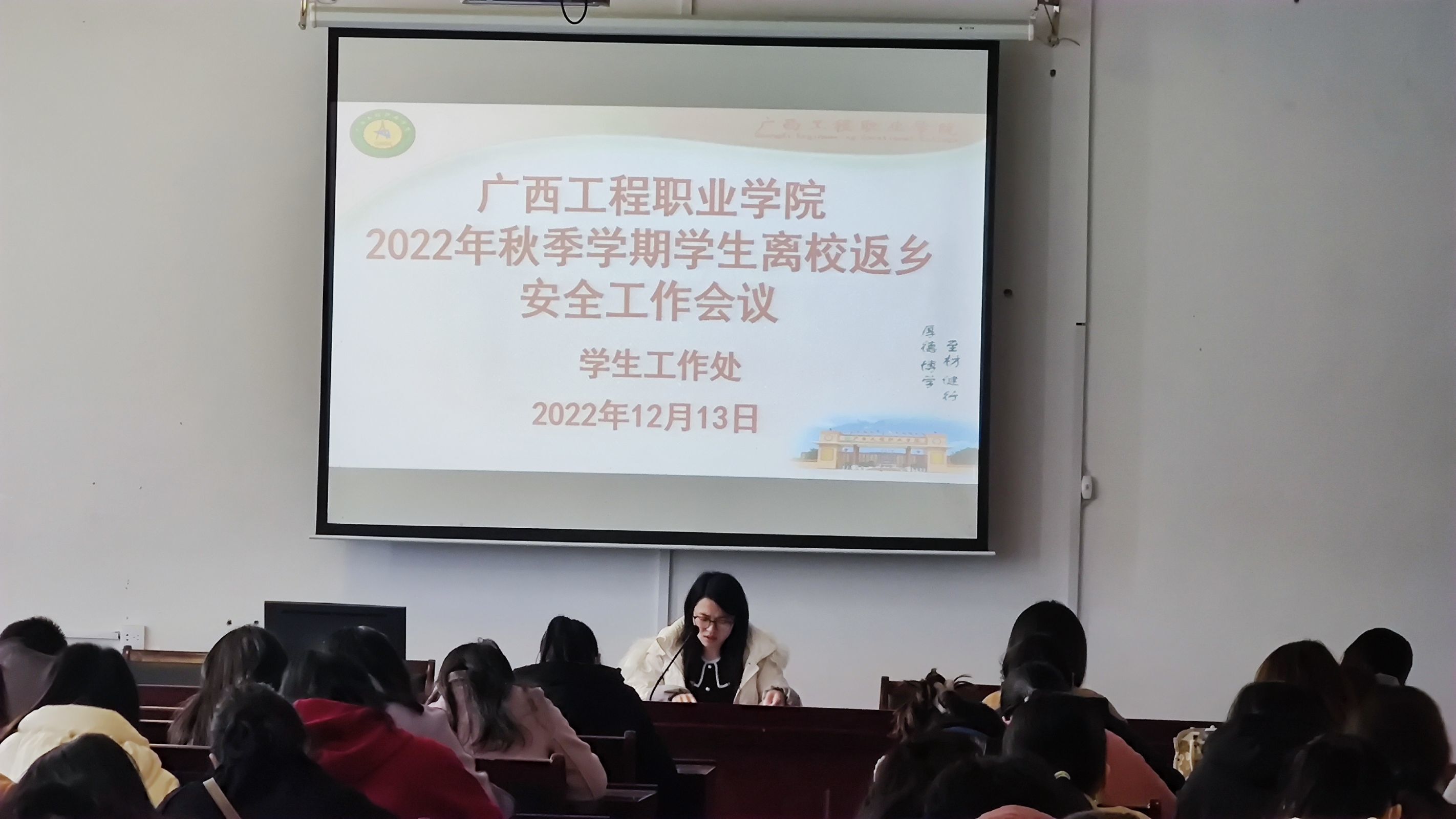 12月13日,我校在圖書館一樓學(xué)術(shù)報告廳召開2022年秋季學(xué)期學(xué)生離校返鄉(xiāng)安全工作會議,學(xué)校黨委副書記黃秋霞、二級學(xué)院院長、科長、副書記、輔導(dǎo)員參加會議。