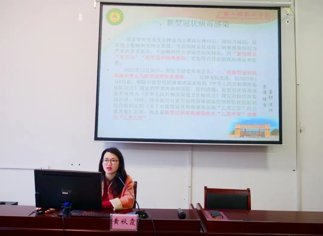 在新冠病毒感染防控知識培訓(xùn)中,黃秋霞副書記指出,當前疫情防控進入新階段,新型冠狀病毒感染從“乙類甲管”調(diào)整為“乙類乙管”,疫情防控工作重心從“防感染”轉(zhuǎn)向“保健康、防重癥”。面對新形勢、新任務(wù),全體師生要扎牢“每個人是自己健康第一責任人”的理念,繼續(xù)堅持戴口罩、勤洗手、多通風、用公筷等良好個人衛(wèi)生習慣和健康生活方式,始終做好個人防護,并自覺自愿及時完成全程疫苗接種和加強針的接種。各部門要認真落實好“乙類乙管”背景下新型冠狀病毒感染疫情防控工作方案要求,調(diào)整優(yōu)化校園檢測策略,加強師生健康監(jiān)測,細化師生健康臺賬,加強物資儲備,改進校園公共衛(wèi)生,完善師生服務(wù)保障,以高度的責任感和防護力度保護師生生命安全和身體健康,最大限度減少疫情對學(xué)校事業(yè)發(fā)展的影響。