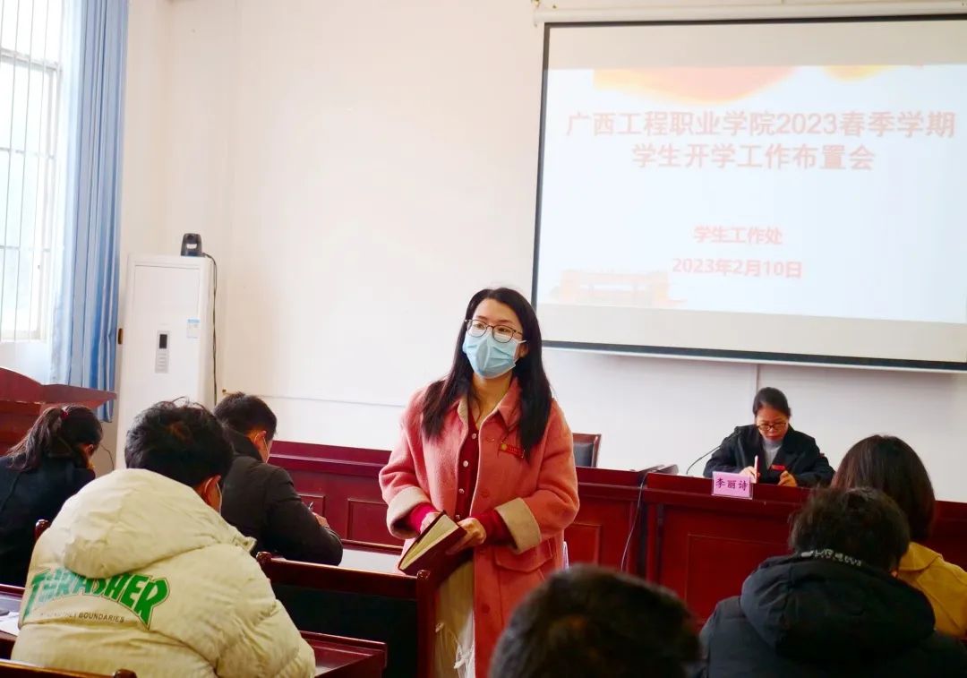 會上,李麗詩副處長對學校2023年春季學期開學具體工作進行了詳細解讀和說明,明確了工作目標和工作要求,強調(diào)各二級學院(部)要做好開學前、開學時、開學后的各項工作。全體輔導員要進一步提高思想認識,明確工作職責,全面提高學生工作服務管理水平,做好學生返校各環(huán)節(jié)銜接,及時發(fā)現(xiàn)問題并妥善處理,確保學生安全返校。