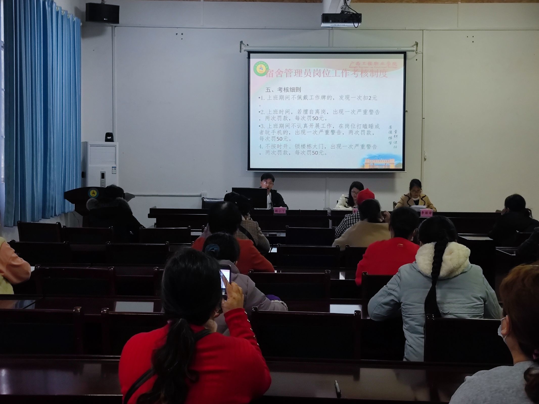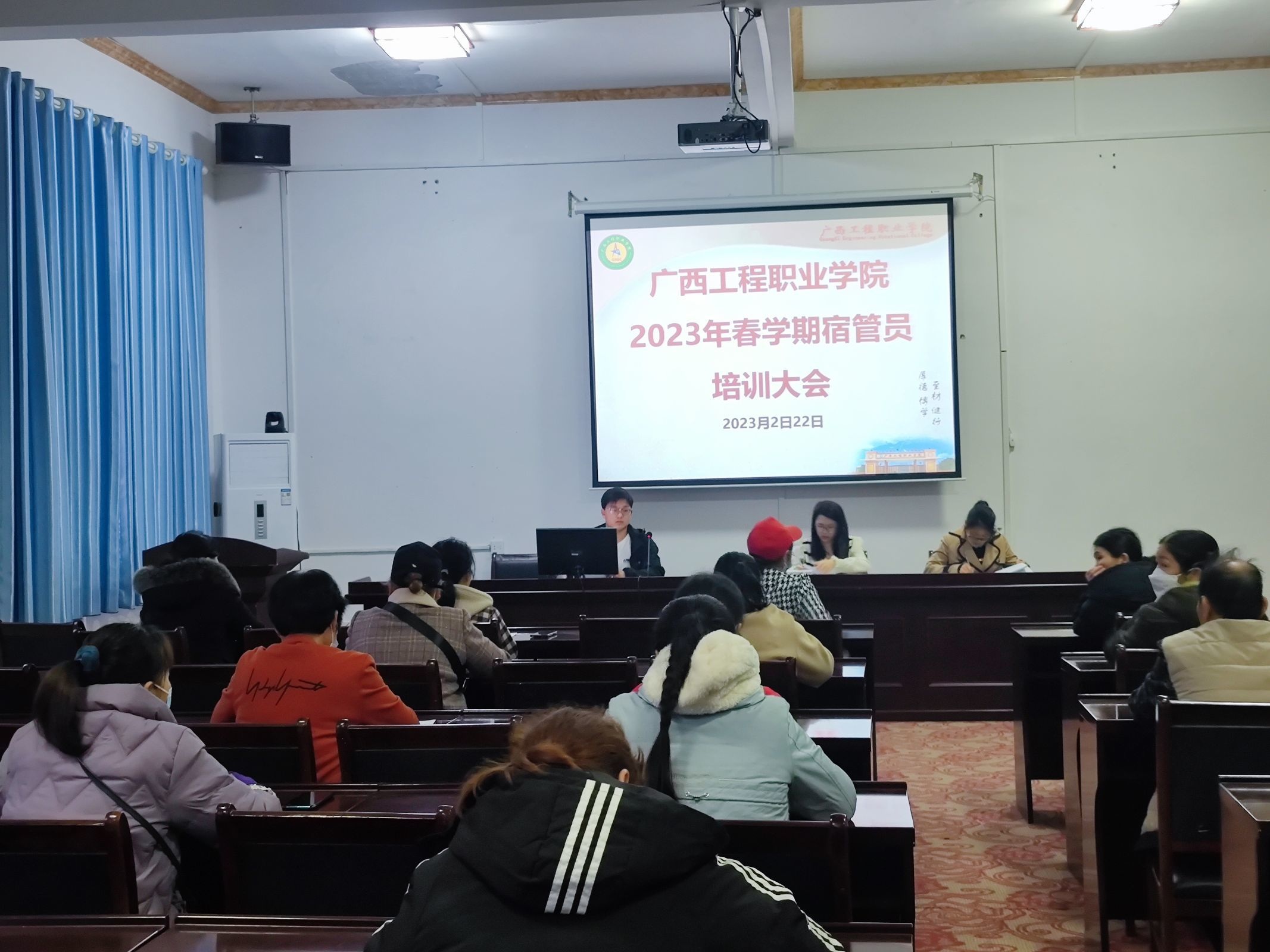 為加強(qiáng)學(xué)生宿舍管理人員隊(duì)伍建設(shè),全面提升宿舍管理員的管理水平和整體素質(zhì),增強(qiáng)安全意識(shí)、服務(wù)意識(shí),進(jìn)一步提高宿舍管理工作方法,2月22日,學(xué)生工作處在圖書(shū)館一樓學(xué)術(shù)報(bào)告廳組織開(kāi)展了全體宿舍管理人員業(yè)務(wù)能力提升培訓(xùn)會(huì),學(xué)校黨委副書(shū)記黃秋霞出席會(huì)議,學(xué)生工作處副處長(zhǎng)李麗詩(shī)、學(xué)生工作處宿管科額小丁老師及全體宿管員參加會(huì)議。