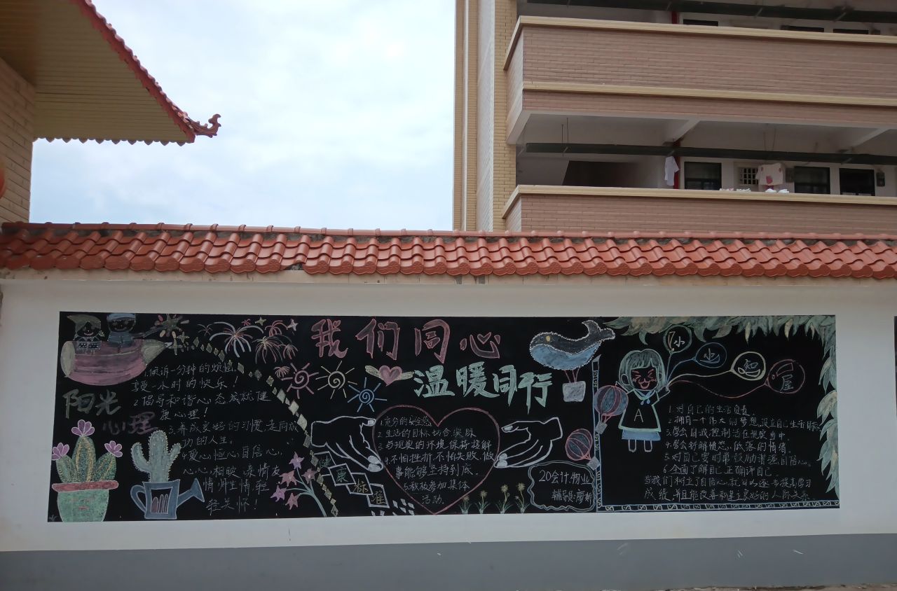 為了加強(qiáng)學(xué)校心理健康教育工作,促使學(xué)生進(jìn)一步了解心理健康知識(shí),增強(qiáng)學(xué)生的自我心理保健意識(shí),使學(xué)生以積極樂觀的心態(tài)面對(duì)學(xué)習(xí)和生活。各二級(jí)學(xué)院根據(jù)本次活動(dòng)主題內(nèi)容精心構(gòu)思策劃、認(rèn)真布局排版,一幅幅主題突出、設(shè)計(jì)新穎、布局合理、圖文并茂、書寫工整的黑板報(bào)呈現(xiàn)出來。黑板報(bào)是是學(xué)校精神文明建設(shè)的一部分,是營(yíng)造良好的校園文化氛圍,彰顯班級(jí)文化建設(shè)魅力的一個(gè)有效途徑,通過黑板報(bào)繪制、評(píng)比活動(dòng),既能增強(qiáng)學(xué)生的綜合能力,又可以達(dá)到相應(yīng)的教育目的為了配合心理健康月活動(dòng)。
