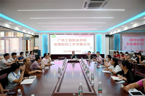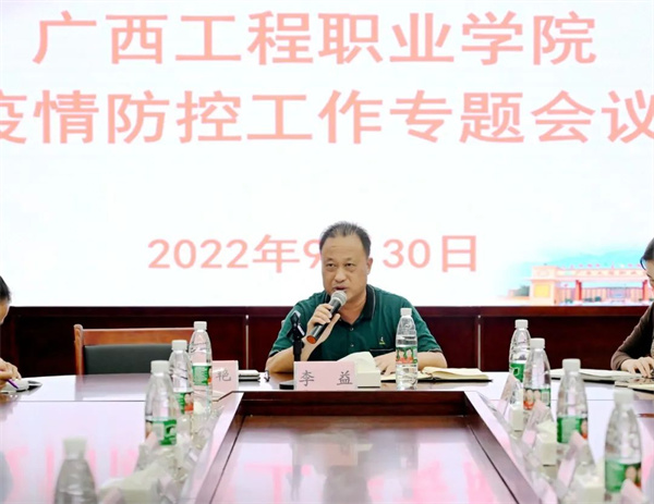 2022年9月30日,廣西工程職業(yè)學(xué)院召開國慶節(jié)前疫情防控與安全穩(wěn)定工作會(huì),傳達(dá)自治區(qū)、百色市及屬地關(guān)于國慶節(jié)前疫情防控和安全穩(wěn)定有關(guān)會(huì)議和文件精神,部署學(xué)校國慶期間疫情防控和安全穩(wěn)定有關(guān)工作。會(huì)議由李益董事長主持,黨委副書記黃秋霞,副校長羅妮、吳先夏、黃德偉,校長助理蔣茂麗,校屬各單位負(fù)責(zé)人及科長參加了會(huì)議。