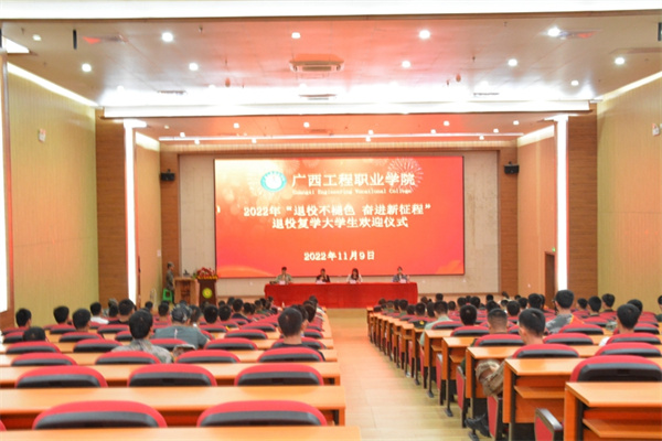 為弘揚廣西工程職業(yè)學院學子積極參軍、報效祖國的優(yōu)良傳統(tǒng),營造尊崇軍人濃厚氛圍,進一步做好退役復學學生的服務工作,11月9日下午,學校在圖文信息大樓一樓學術報告廳召開了2022年退役復學大學生“退役不褪色 奮進新征程”歡迎會。黨委副書記黃秋霞,黨委委員、學生工作處副處長李麗詩,國防科技學院副院長李捷、學工處資助科科長范玉翠出席歡迎儀式,各二級學院學生科長、22級輔導員及2022年退役復學大學生參加了歡迎儀式。李捷副院長主持儀式。