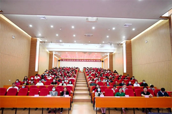 凝聚力量預(yù)防艾滋,用心關(guān)愛生命健康。為進一步做好預(yù)防艾滋病教育工作,傳播預(yù)防艾滋病知識,提高同學們的自我保護意識和能力。11月9日晚,廣西工程職業(yè)學院邀請平果市疾病預(yù)防控制中心防艾科向榮副科長在學校圖文信息大樓一樓學術(shù)報告廳開展防艾健康講座。學校黨委副書記黃秋霞,各二級學院院長、黨支部副書記、學生科長、輔導員,各二級學院學生代表及保安、宿管員、綠化保潔員代表到現(xiàn)場聆聽講座。其余師生員工通過騰訊會議線上觀看講座直播。學生工作處陳國昇老師主持講座。