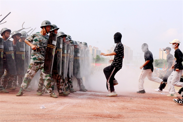 2022級(jí)新生軍訓(xùn)匯報(bào)表演正式開(kāi)始。2022級(jí)全體新生各方隊(duì)依次進(jìn)行分列式、擺字、手語(yǔ)操、拳術(shù)、應(yīng)急棍、匕首操、戰(zhàn)術(shù)(防爆隊(duì)形)表演。他們軍姿標(biāo)準(zhǔn)、志氣高昂、口號(hào)嘹亮、動(dòng)作干凈利落、精神抖擻、意氣風(fēng)發(fā),英姿颯爽,充分展示了新時(shí)代青年學(xué)生青春昂揚(yáng)、英武豪邁的精神風(fēng)貌。匯報(bào)表演在老師、同學(xué)們的陣陣掌聲和喝彩聲中圓滿(mǎn)結(jié)束。