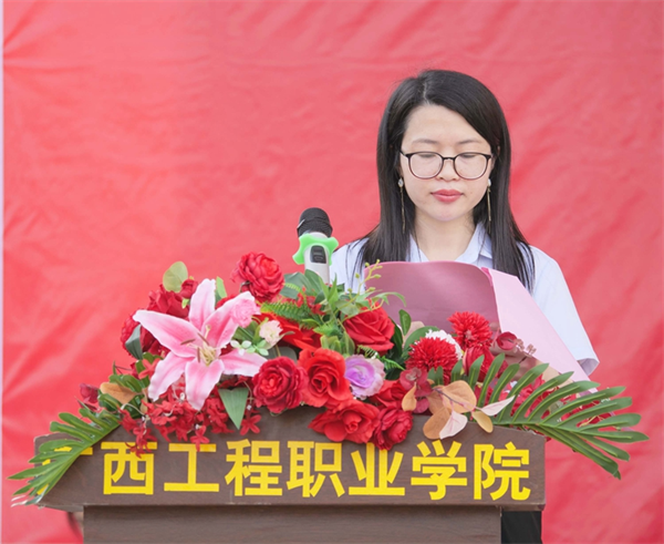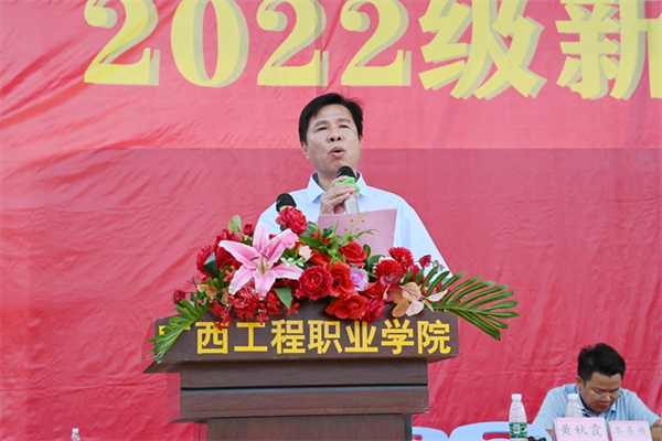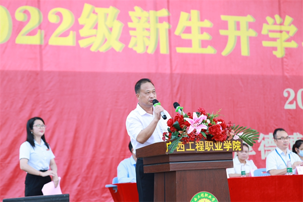紀(jì)委書(shū)記、副校長(zhǎng)彭高彬帶領(lǐng)全體新生進(jìn)行入學(xué)宣誓。全體新生以青春之名,宣誓表決心:我是廣西工程職業(yè)學(xué)院的學(xué)生,我將胸懷祖國(guó),遵紀(jì)守法,嚴(yán)守校紀(jì)校規(guī),尊師愛(ài)校,勤奮好學(xué),團(tuán)結(jié)友愛(ài);明德修身,誠(chéng)以待人,毅以處事;謹(jǐn)記“厚德博學(xué),至材健行”校訓(xùn),弘揚(yáng)“熔煉工匠精神,鑄就一流技藝”的學(xué)校精神,緊跟時(shí)代步伐,勇?lián)鷼v史使命,立志成才,報(bào)效祖國(guó)。他們以鏗鏘有力的誓言奏響新時(shí)代青年的自強(qiáng)不息、學(xué)習(xí)向未來(lái)的最強(qiáng)音。