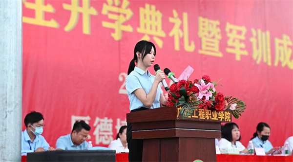 新生代表2022級(jí)教育學(xué)院學(xué)前專(zhuān)業(yè)胡珂馨同學(xué)發(fā)言,她表示會(huì)把軍訓(xùn)期間養(yǎng)成的良好品德和作風(fēng)帶到今后的學(xué)習(xí)、工作中去,勤奮學(xué)習(xí),遵紀(jì)守信,自強(qiáng)不息,做一名優(yōu)秀的工程學(xué)子。