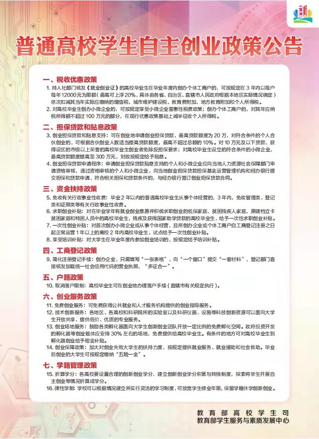 普通高校學(xué)生自主創(chuàng)業(yè)政策公告