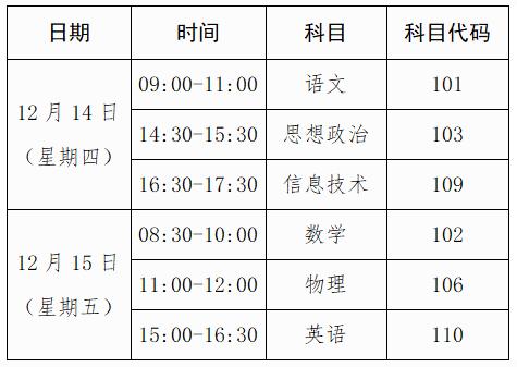 12月1日至15日。高中在校生由學(xué)校統(tǒng)一打印發(fā)放準(zhǔn)考證,社會考生使用“網(wǎng)上報(bào)名系統(tǒng)”自行打印準(zhǔn)考證。
