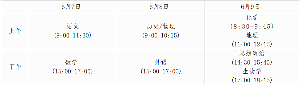 從考試時間來看,全國統(tǒng)考科目考試時長與改革前相同:語文科目考試時長為150分鐘,數(shù)學(xué)、外語科目考試時長均為120分鐘;每門選擇性考試科目考試時長均為75分鐘。根據(jù)考試要求,考生于考前40分鐘開始進(jìn)入考場,開考15分鐘后(外語學(xué)科考試14:45后)遲到考生不得進(jìn)入考點和考場。